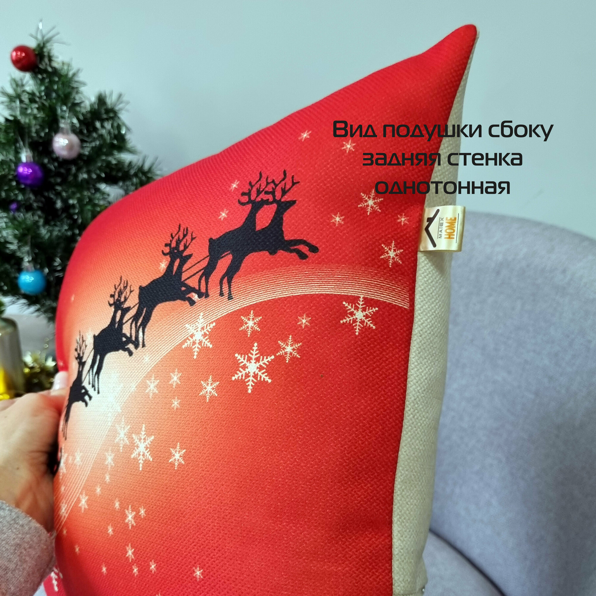 Подушка декоративная матех CHRISTMAS LINE. Олени летят 38*38*15. Цвет красный, черный, арт. 37-675 интересное:
