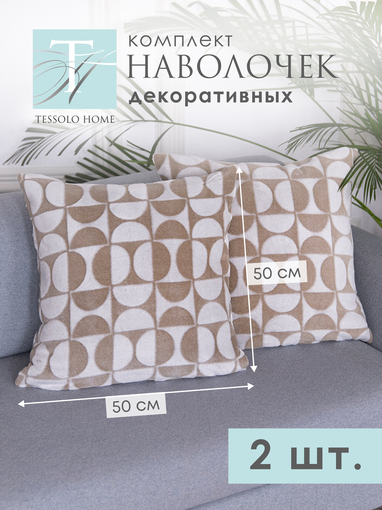 Декоративные наволочки 50х50 MICRO VELUR, "Волна", 2 шт, бежевый