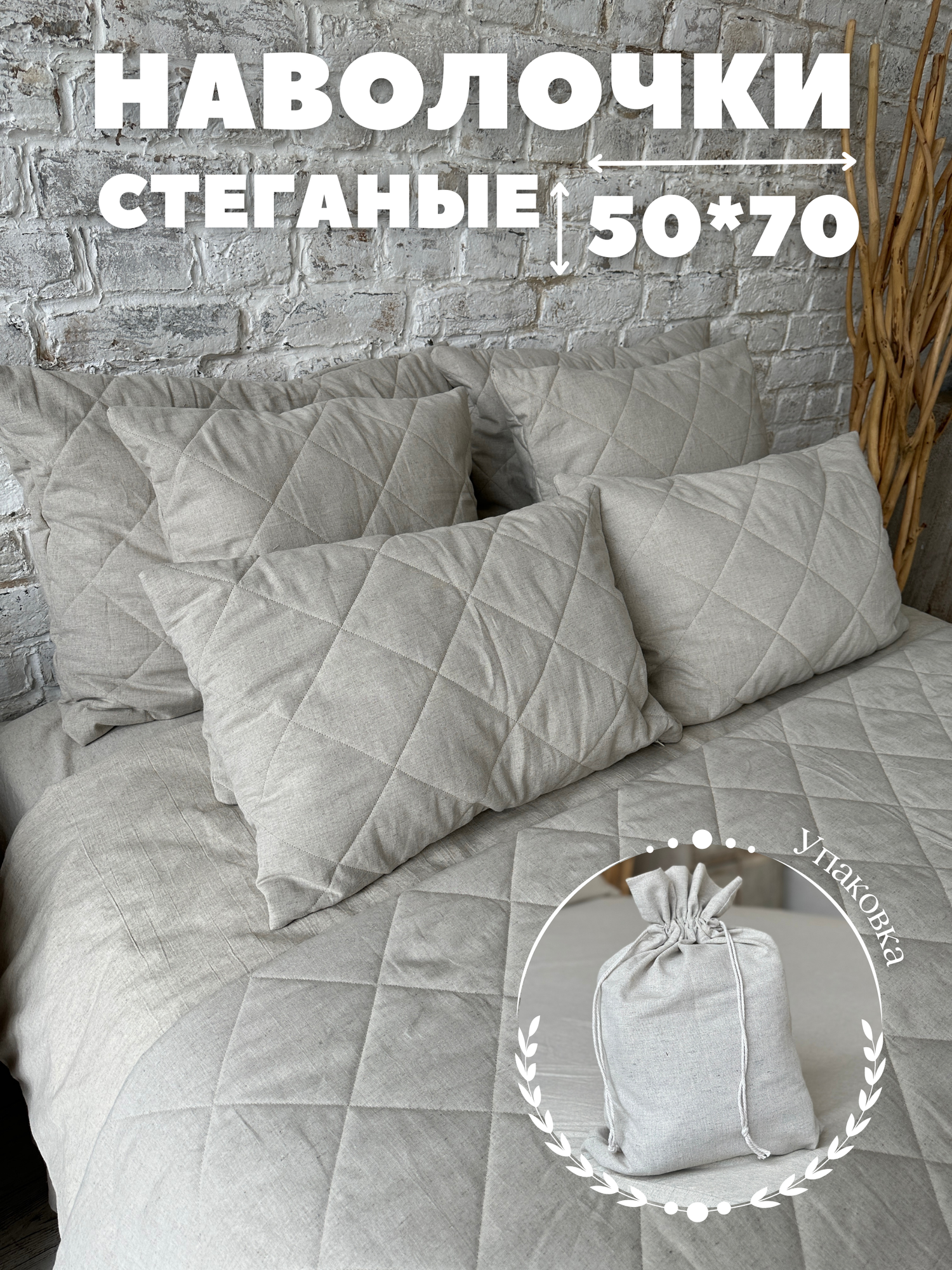 Чехол на подушку Home Flax неокрашенный лен, 50 см х 70 см, 2 шт интересное: