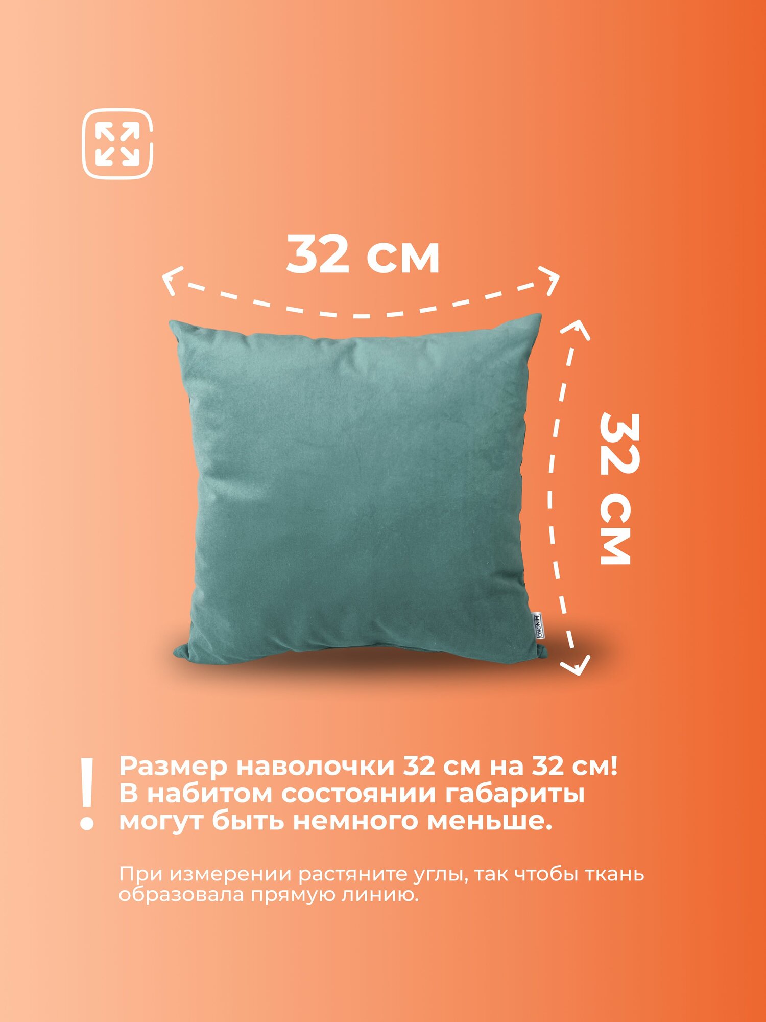 Купить Подушка декоративная 32х32 MINOKO Velure Мох, с молнией, 1шт