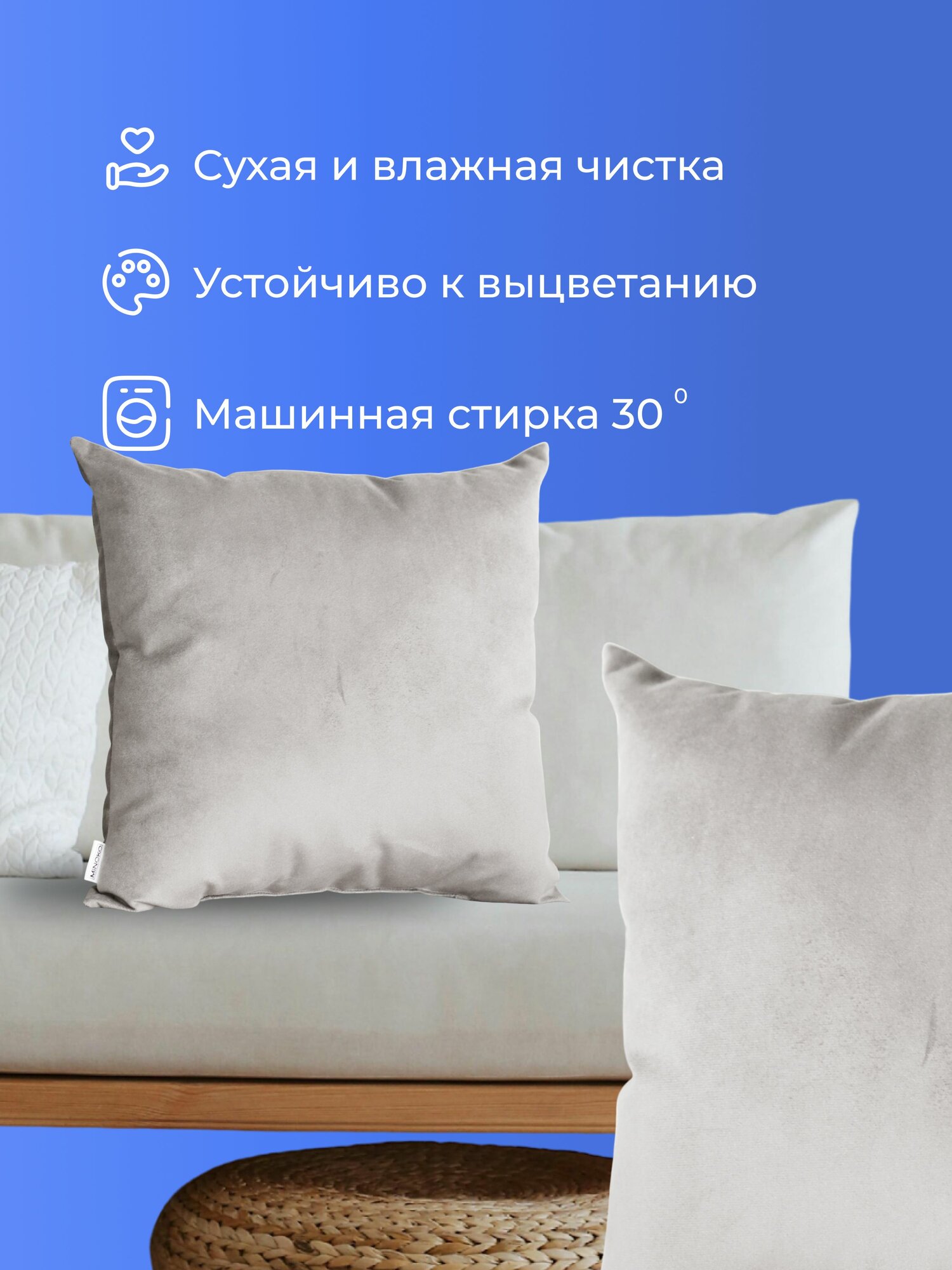 Подушка декоративная 45х45 MINOKO Velure Слоновая Кость, с молнией, 1шт
