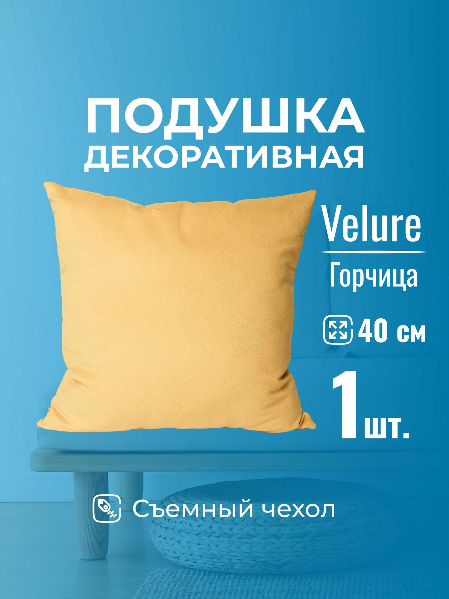 Купить Подушка декоративная 40х40 MINOKO Velure Горчица, с молнией,1шт