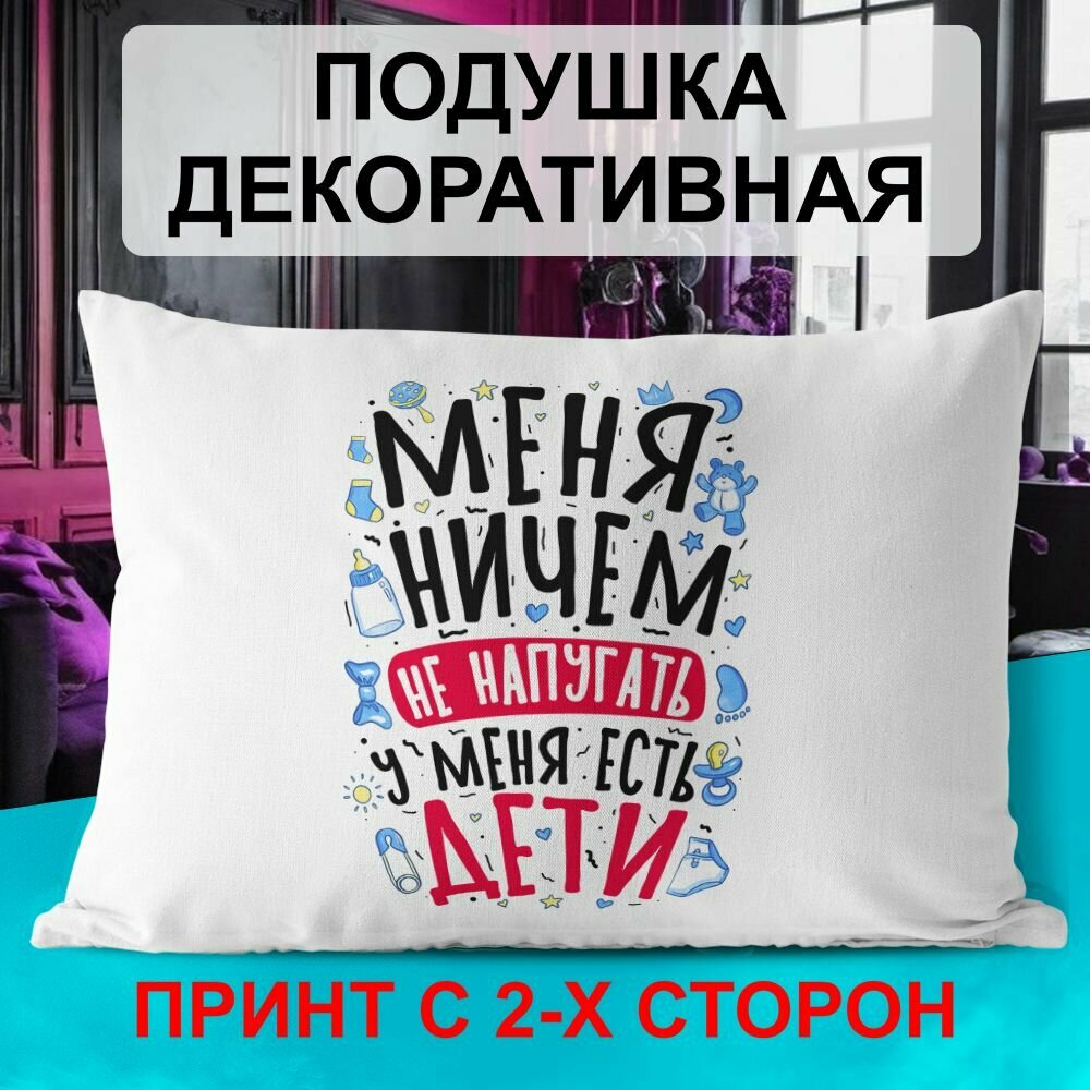 Декоративная подушка PDS Studio: Меня ничем не напугать, у меня есть дети. Бантик, мишка, погремушка интересное: