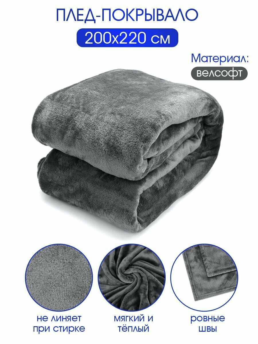 Плед велсофт ND Play "Микс светло-серый", 100% полиэстер 200*220 см интересное: