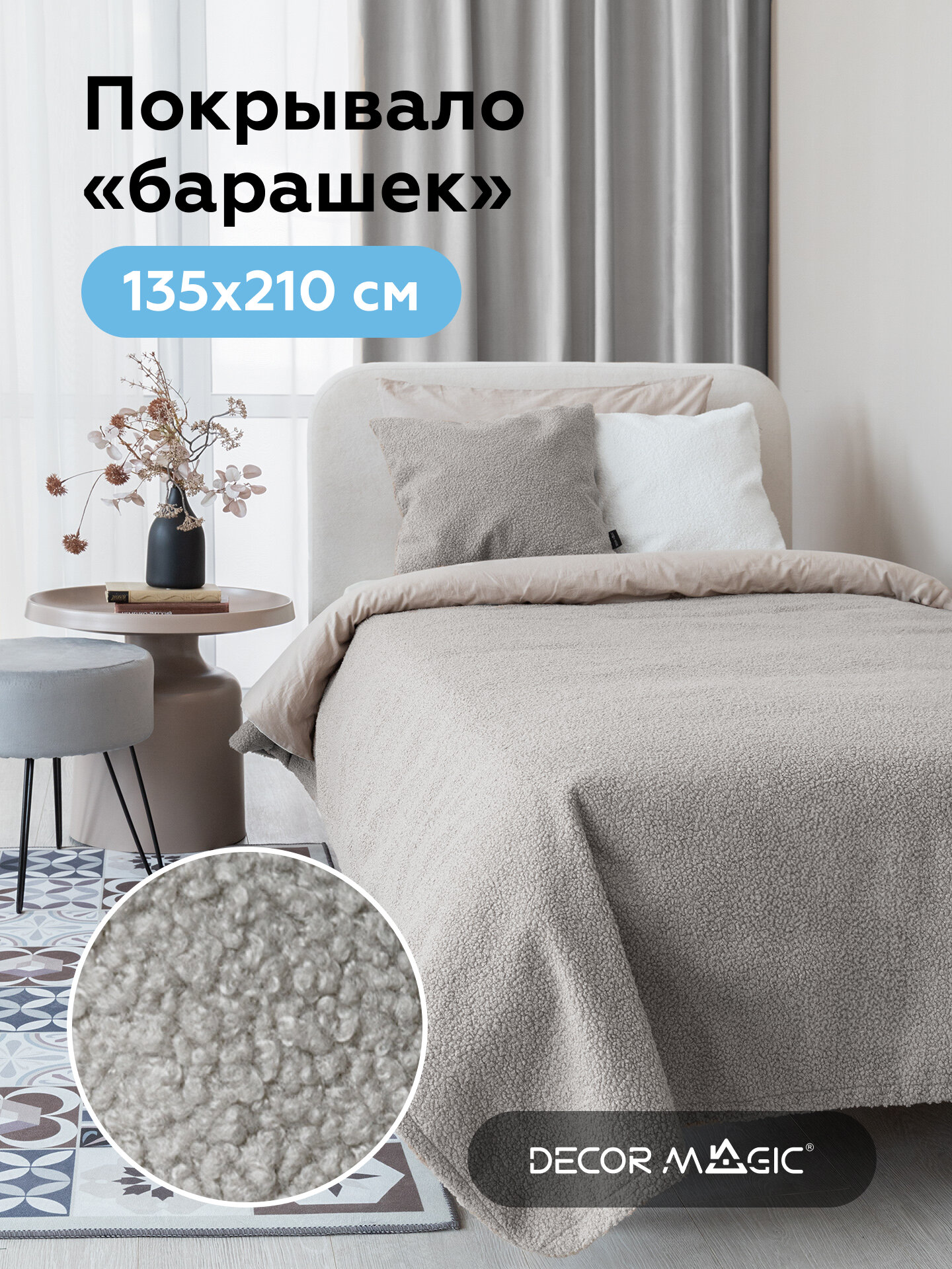 СохранитьНакидка на диван, букле UNO BRAVO ASH, 135х210 см. покрывало интересное: