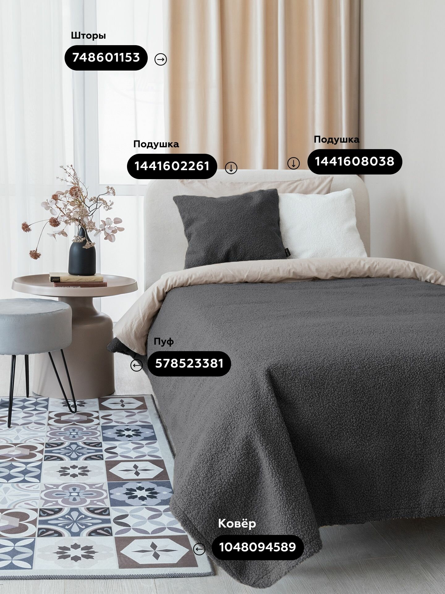 СохранитьПокрывало на кровать, UNO BRAVO GRAFIT, накидка барашек, 135х210 см интересное: