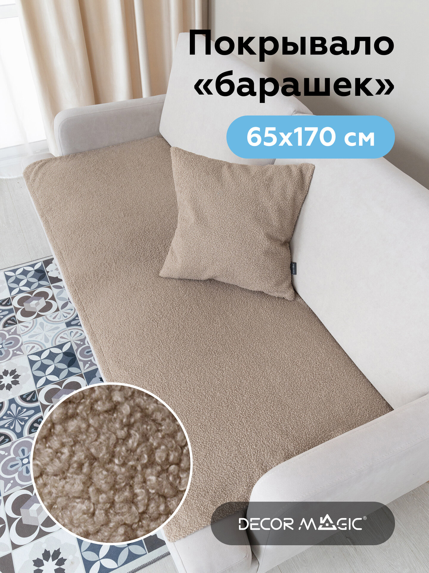 Накидка на диван, букле UNO BRAVO ASH, 135х210 см. покрывало