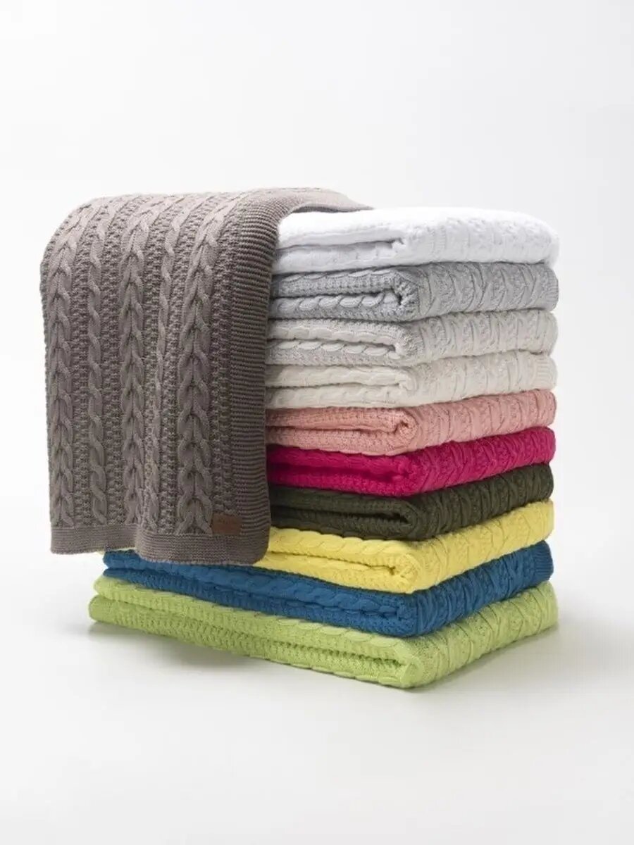 Плед 120х220 см PULLTON покрывало одеяло диван кровать вязаный детский хлопок 100%