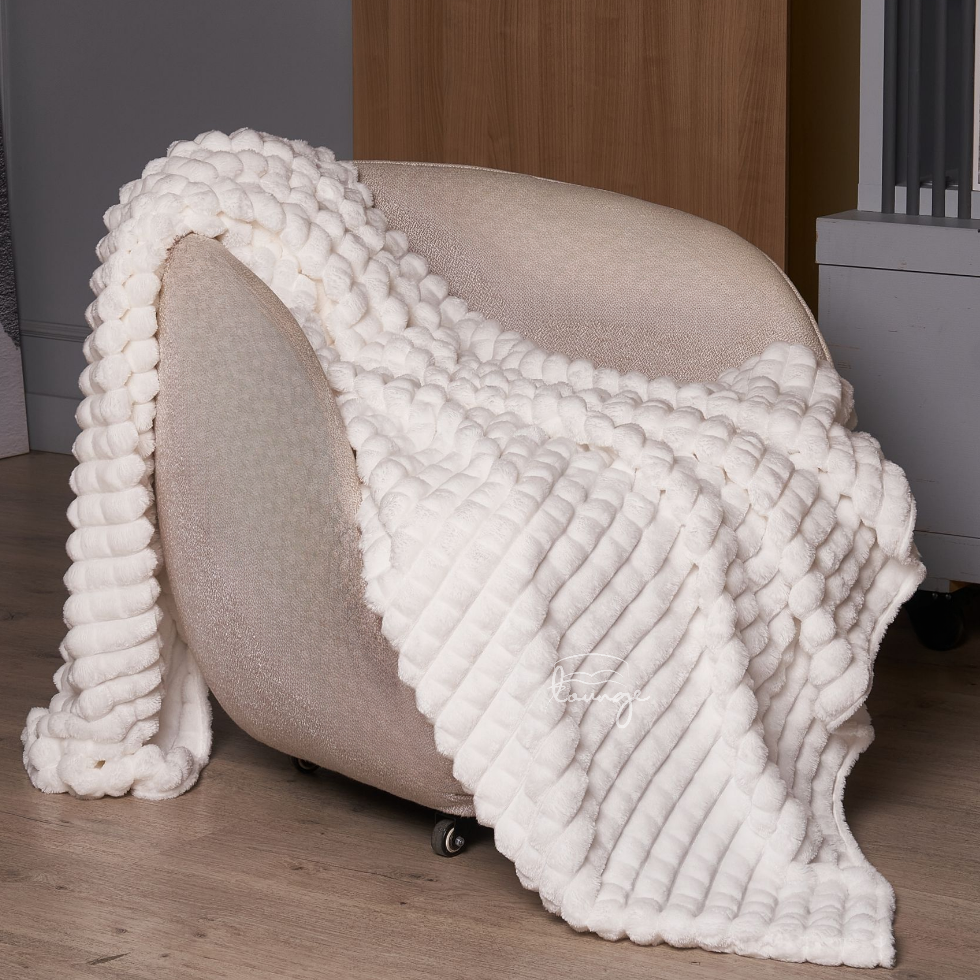 Купить Плед пушистый на кровать, диван, кресло велсофт "Royal White Cube" LOUNGE/ покрывало 1,5-спальное, 150х200