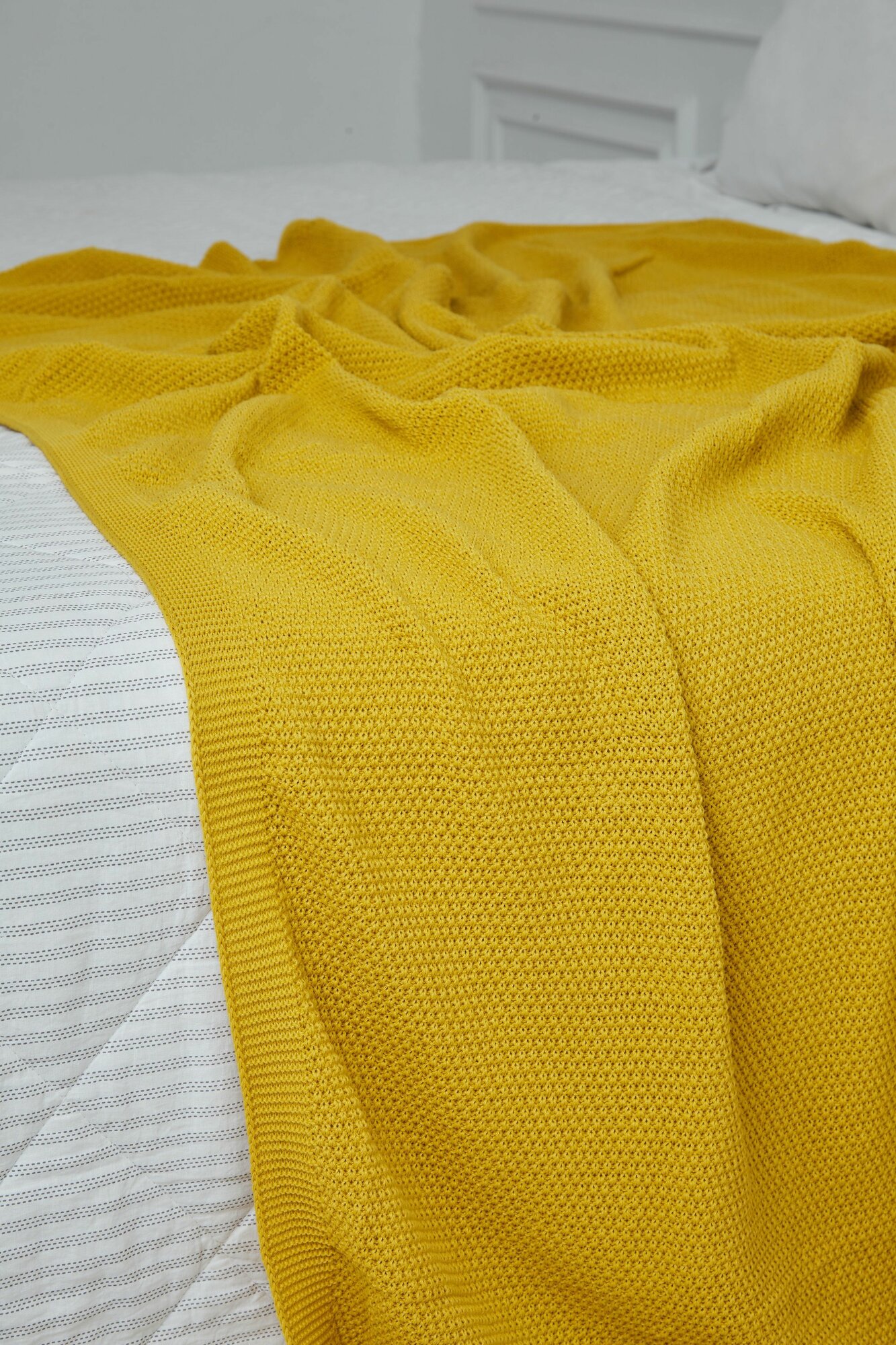 Плед-покрывало вязаный AlmaForHome SunnySmile горчичный 135х200см.