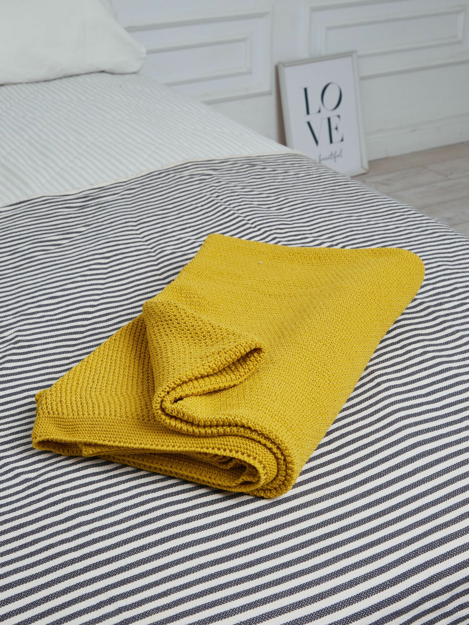 Купить Плед-покрывало вязаный AlmaForHome SunnySmile горчица 135х200см.