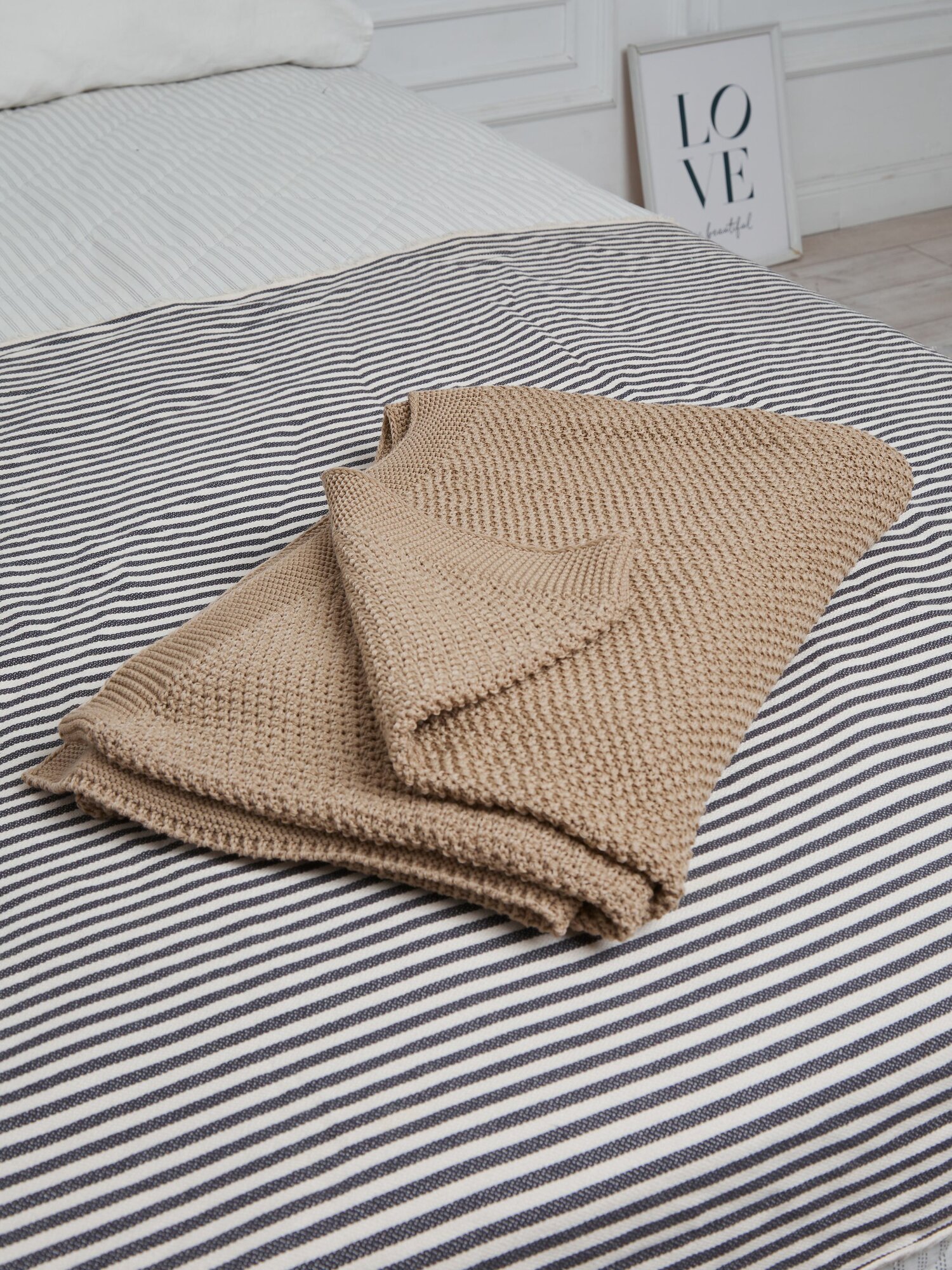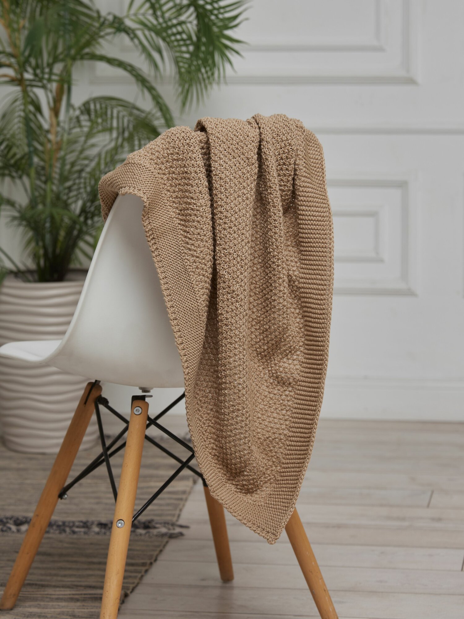 Купить Плед-покрывало вязаный AlmaForHome SunnySmile темно-бежевый 135х200см.