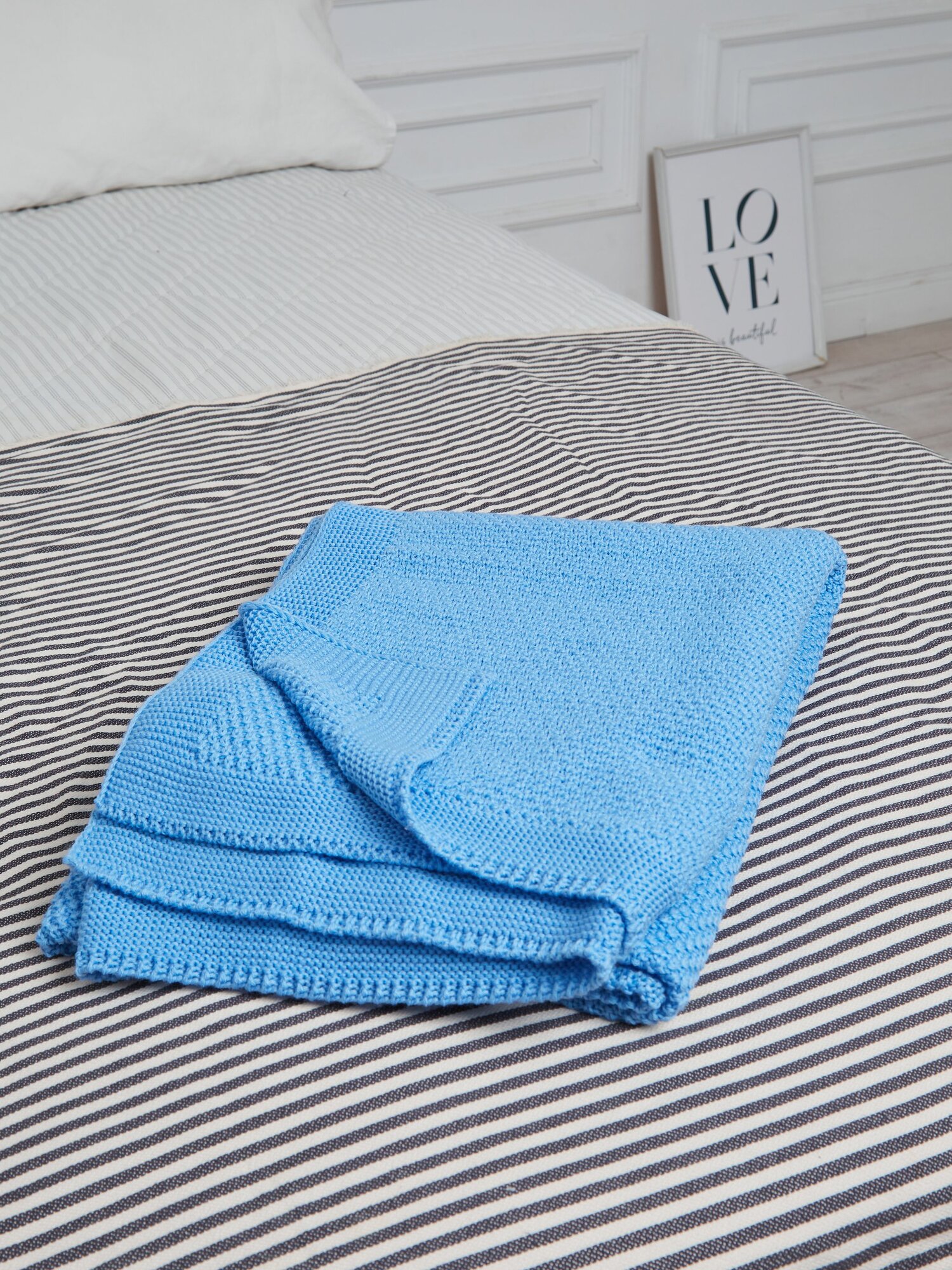 СохранитьПлед-покрывало вязаный AlmaForHome SunnySmile голубой 135х200см. интересное: