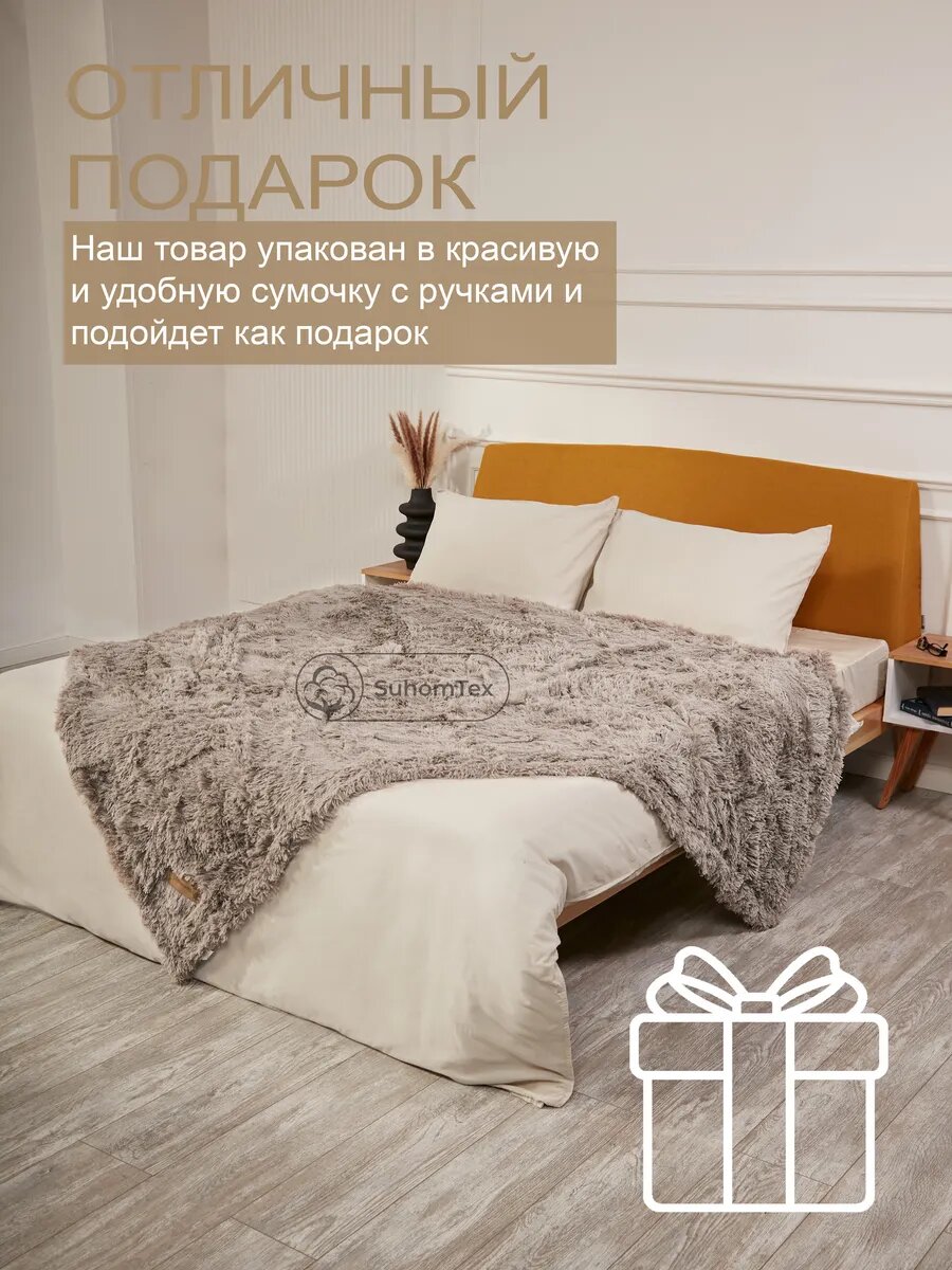 Плед SuhomTex 220х240 меховой на диван евро, серый