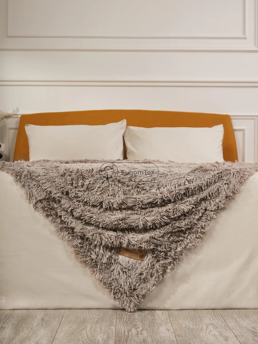 Плед Евро 220х240 пушистый светло-бежевый интересное: