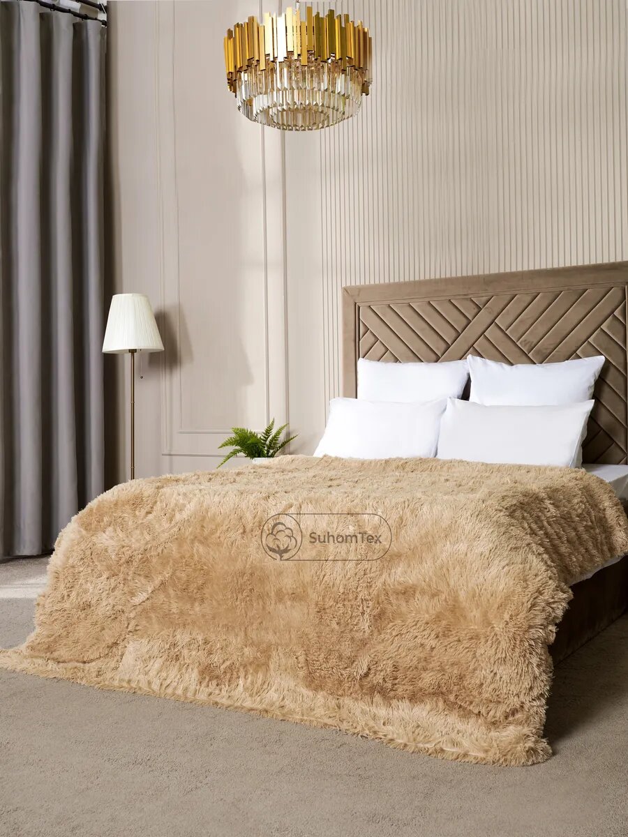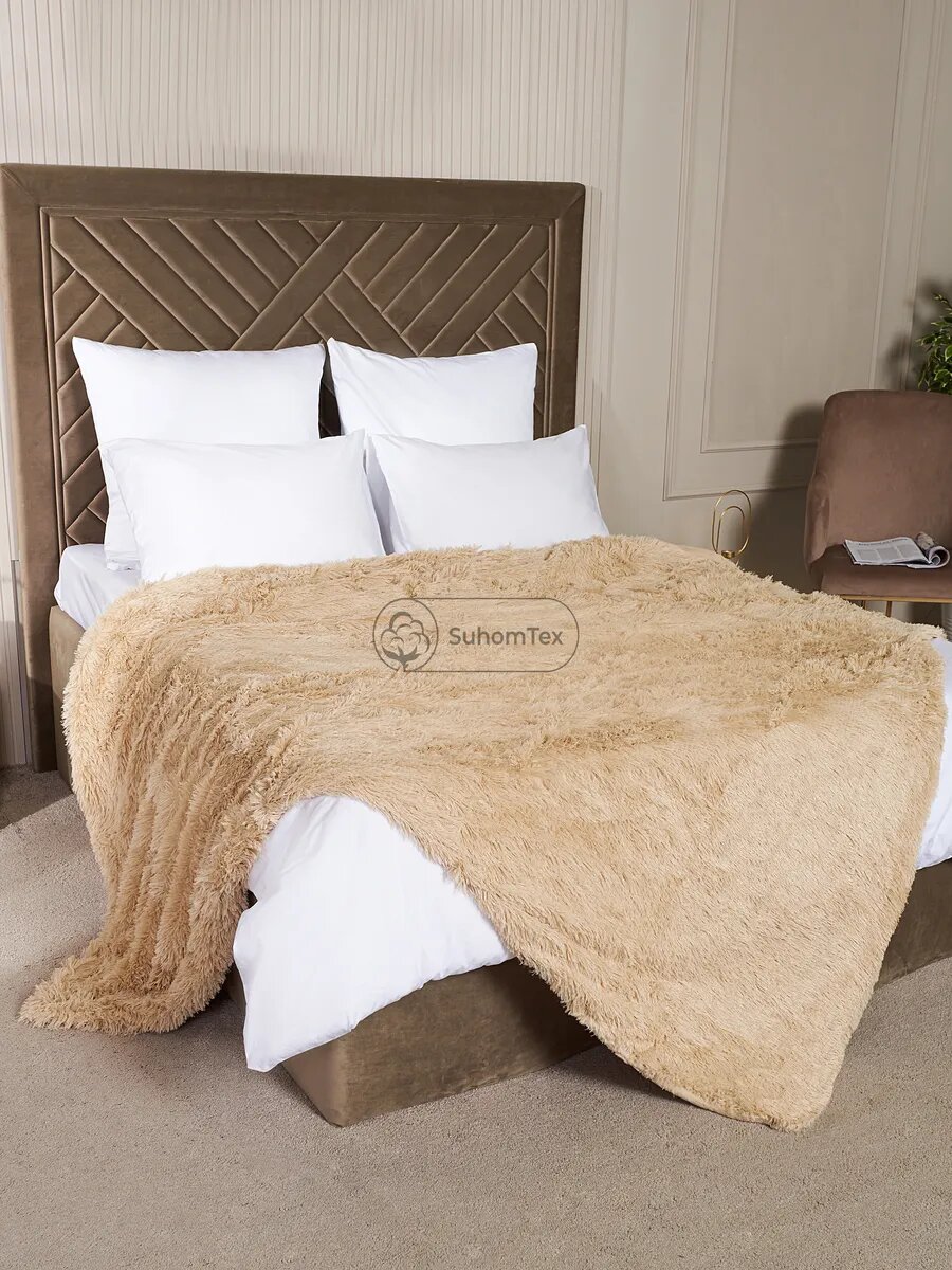 Купить Плед пушистый на кровать евро 220х240 бежевый