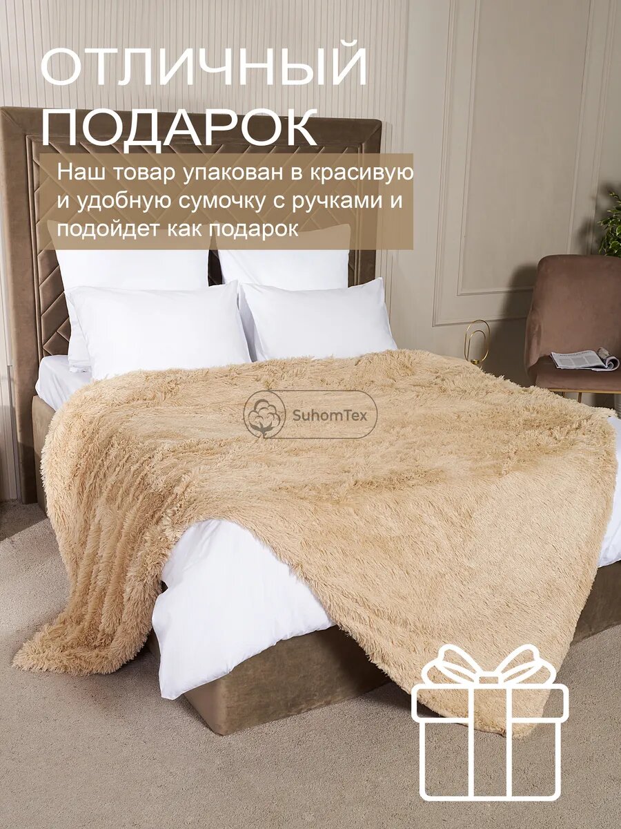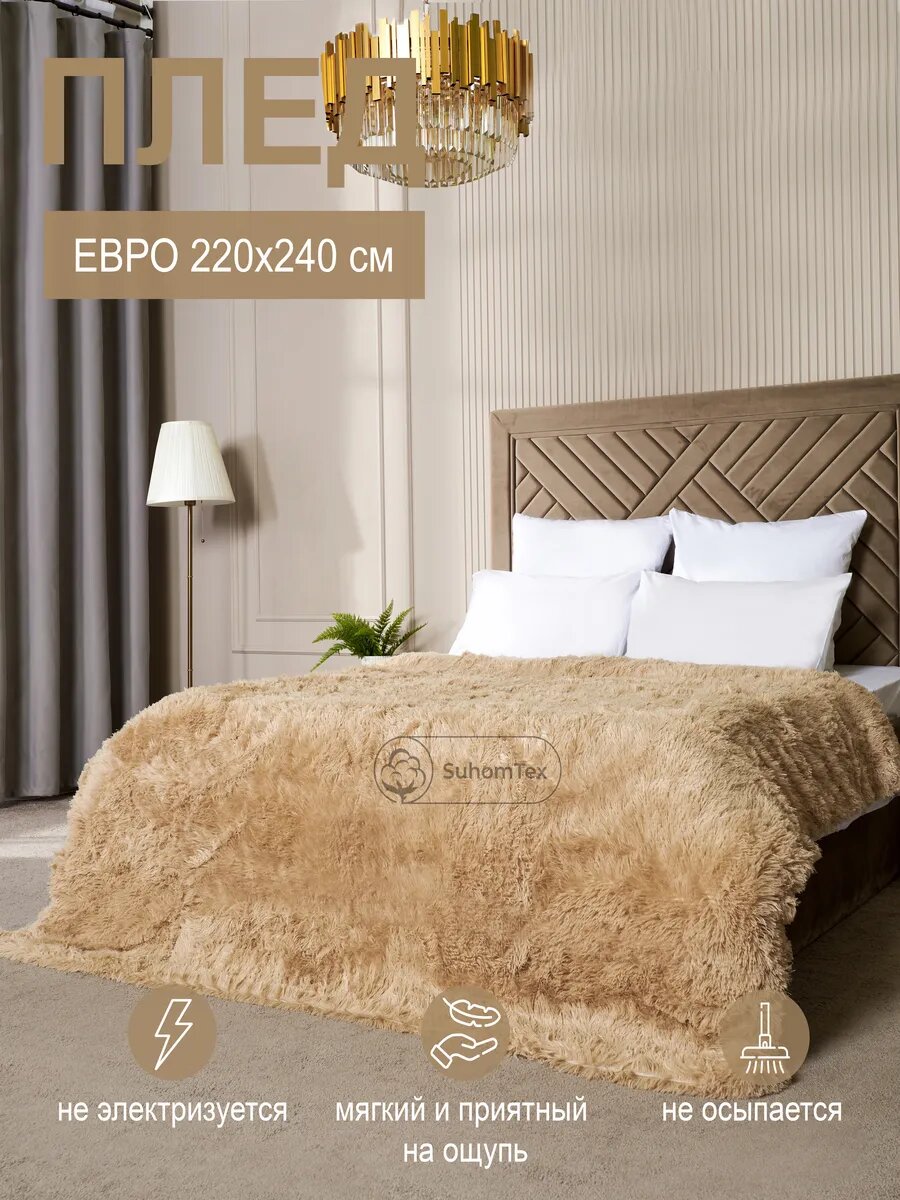 Плед пушистый на кровать евро 220х240 бежевый интересное: