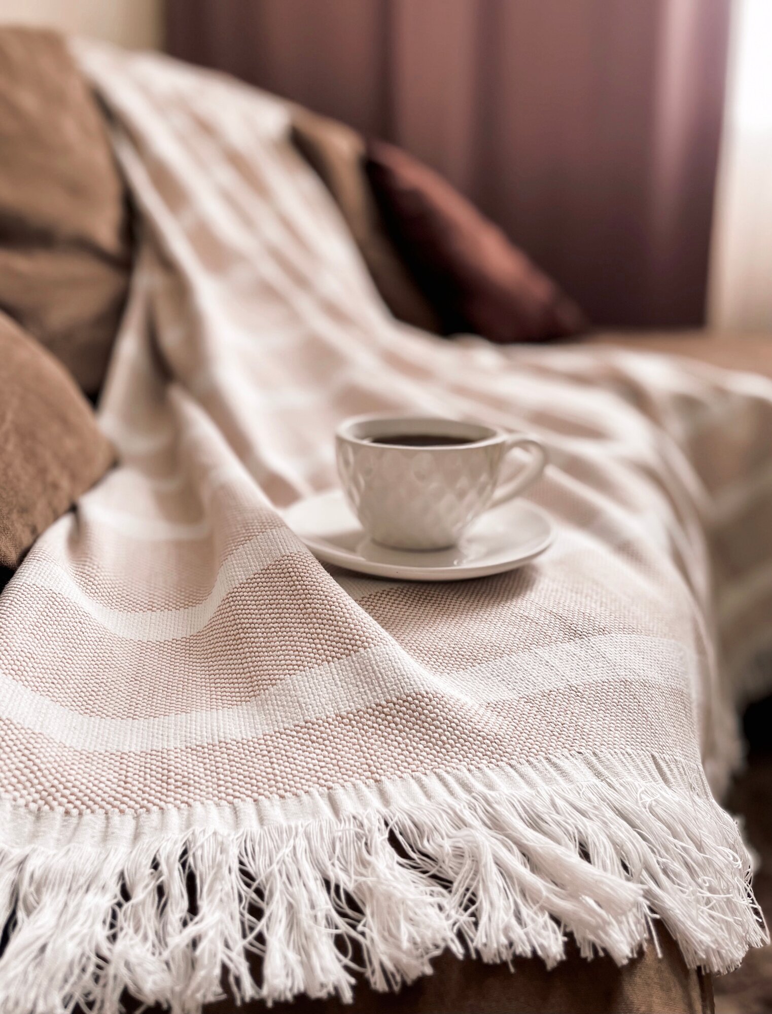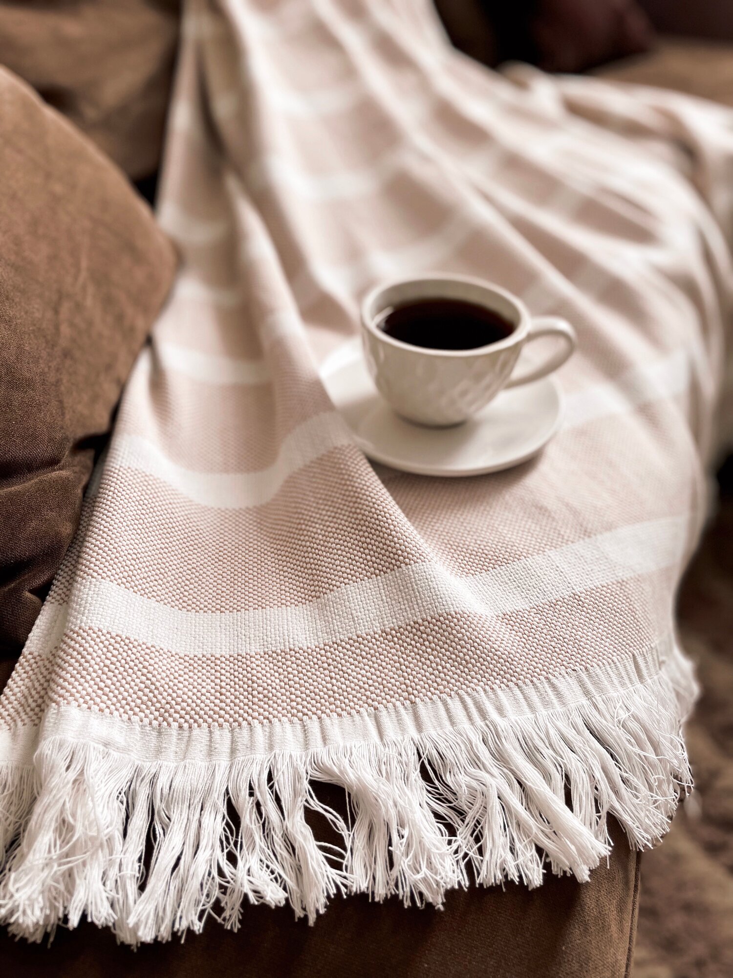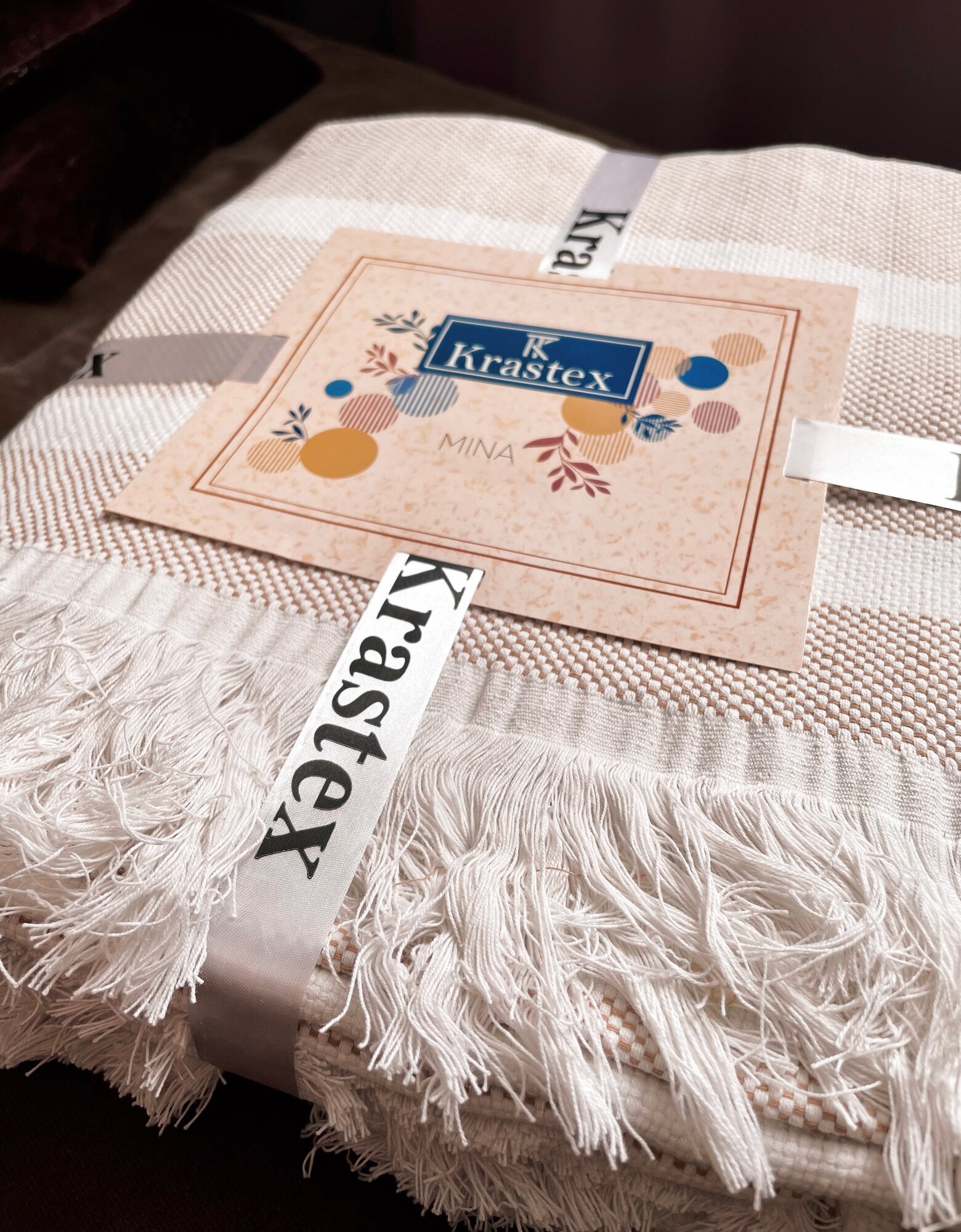 Купить Плед-покрывало Krastex Mina, хлопок 100%, цвет кофе с молоком, 210x155