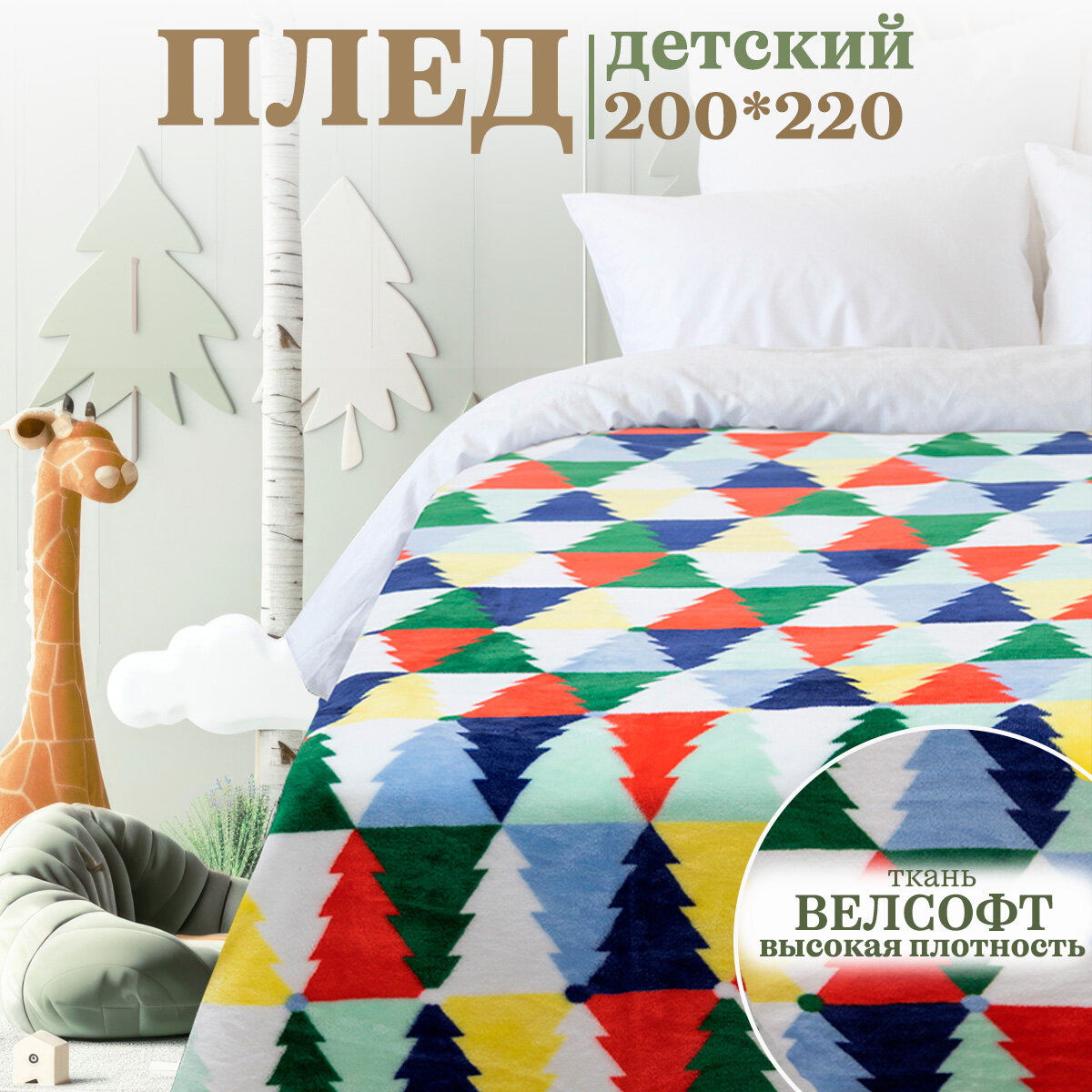 Купить Плед Детский ЕВРО 200х220 см, Happy Family велсофт/ Мозаика/мягкий, теплый плед на кровать/В детскую комнату/NEW 2025