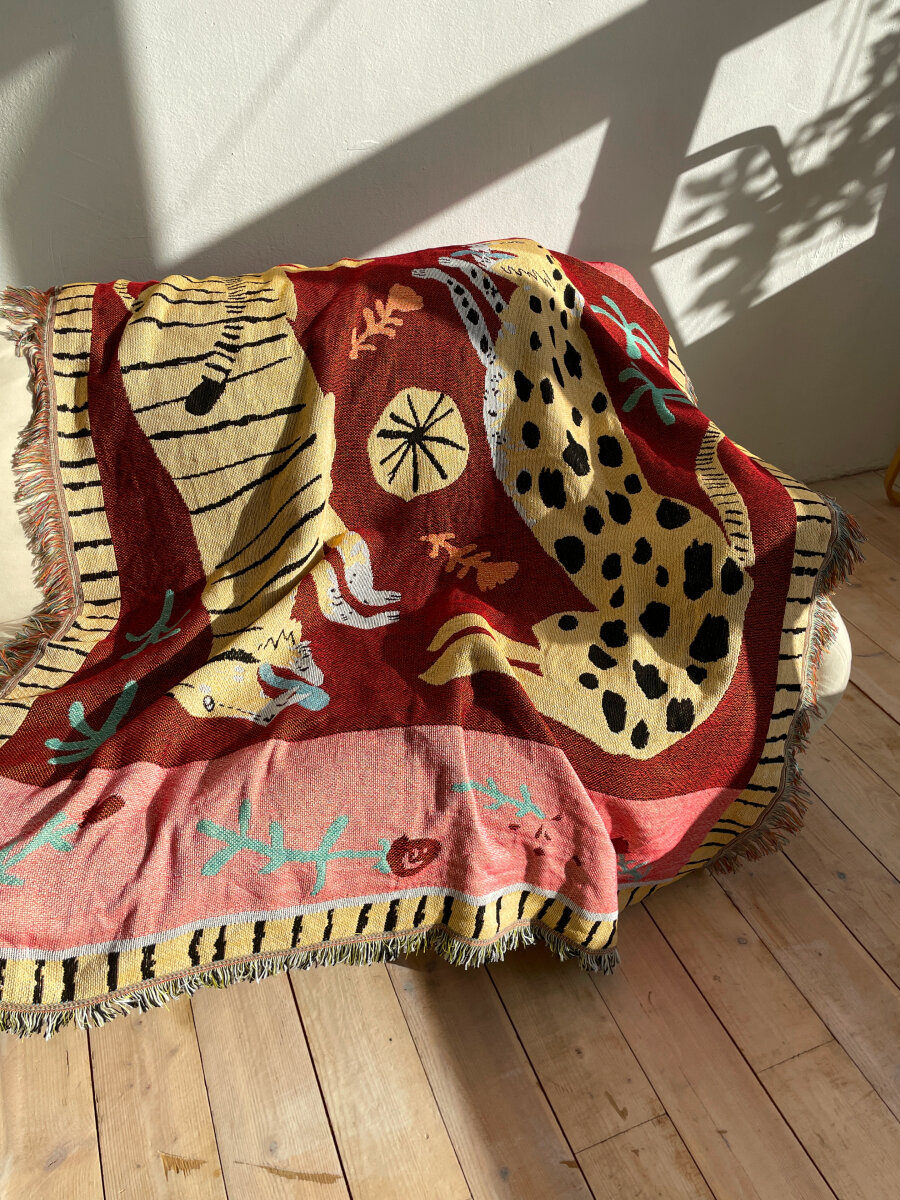 Купить Плед-покрывало для пляжа, кресла или дивана, пикника, тканный с тиграми 130 х 160 см