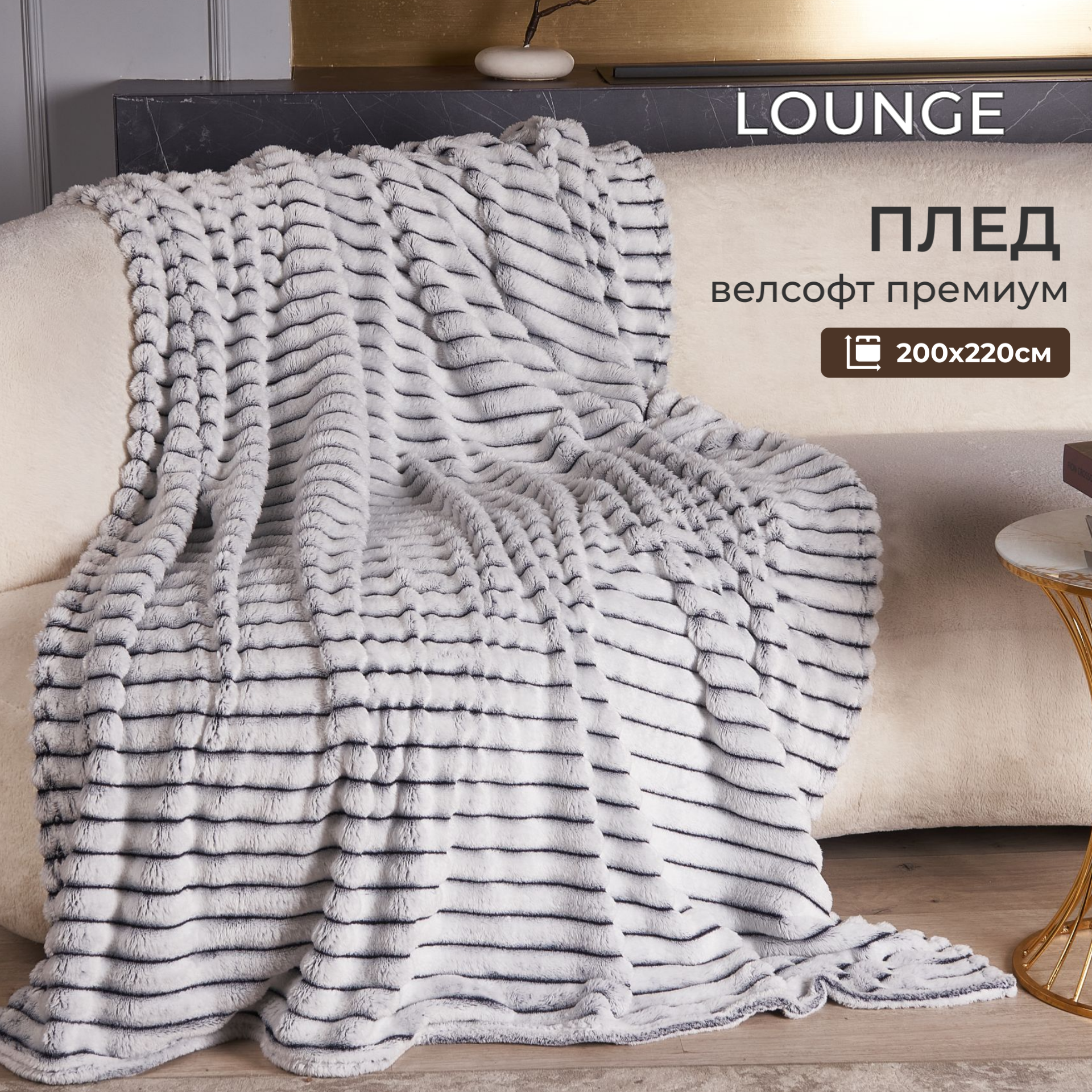 Плед пушистый на кровать, диван, кресло велсофт "Royal Grey Cube" LOUNGE/ евро, 200х220
