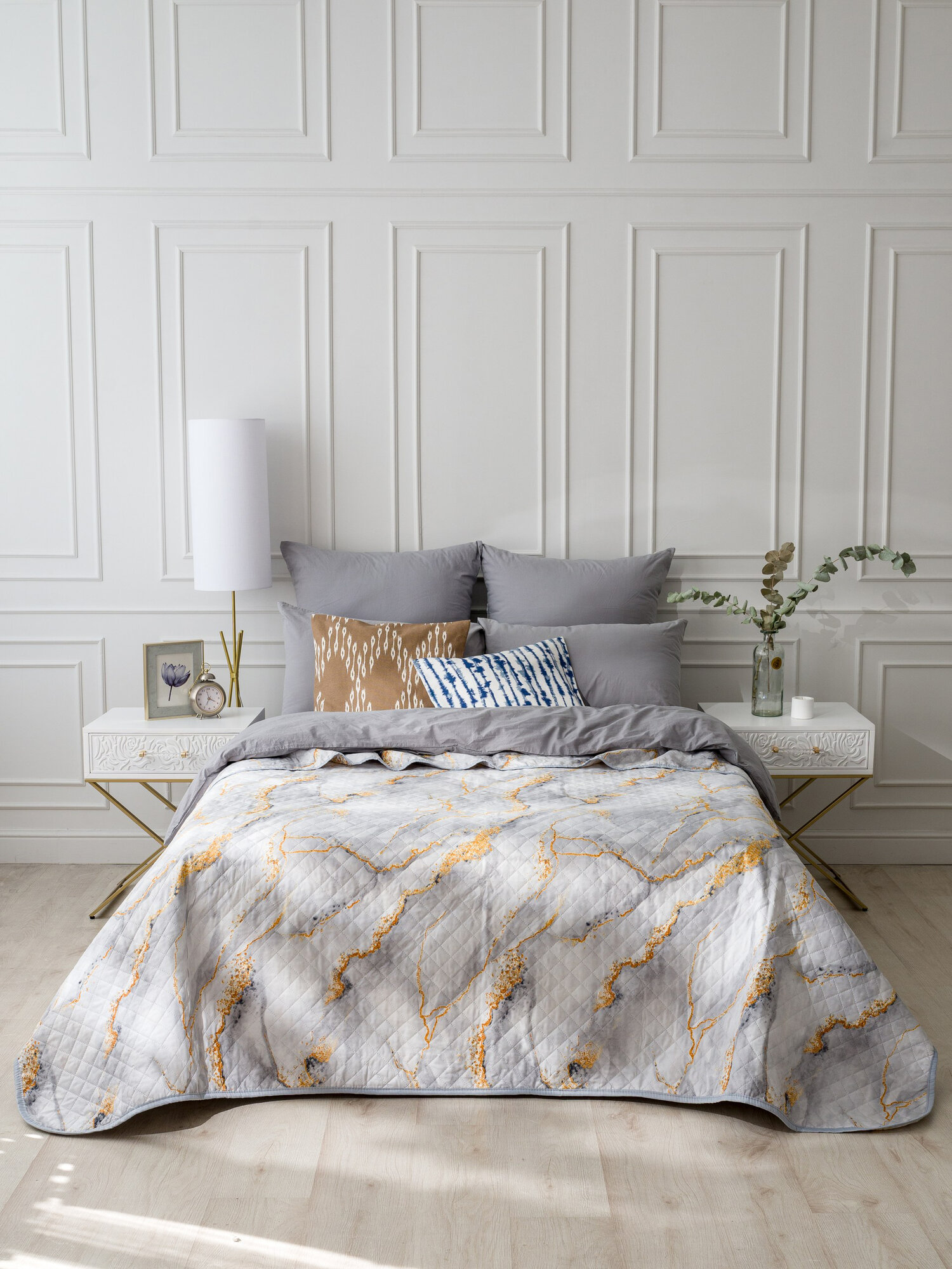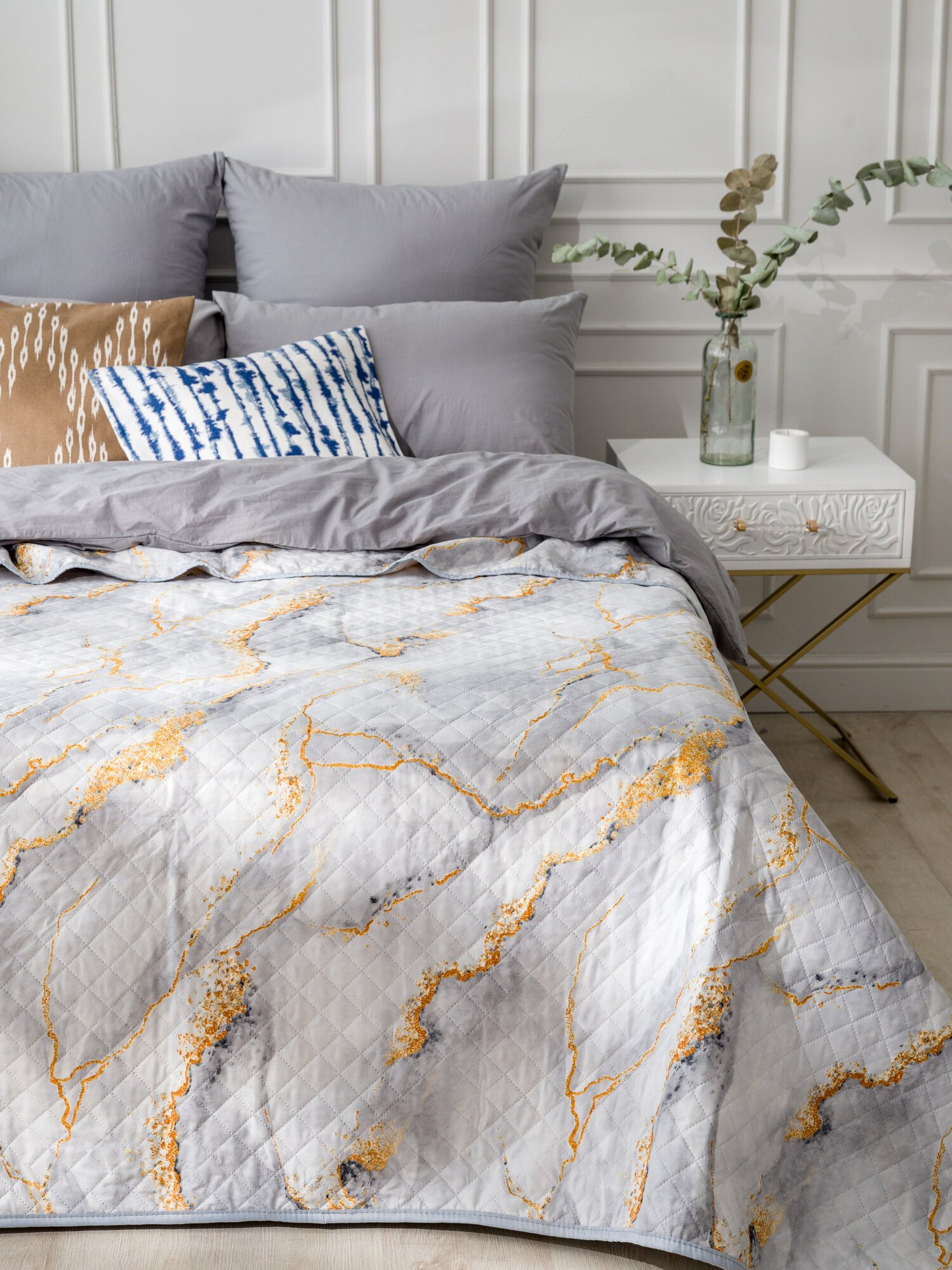 Покрывало на кровать и диван Вселенная Текстиля Полисатин жаккард № 14-0000, Ультрастеп двухстороннее 240x210 см Евро