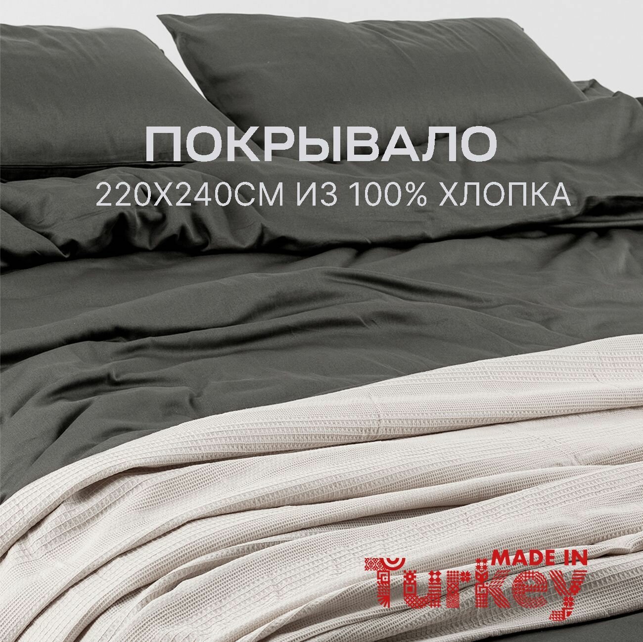 Покрывало на кровать 220х240 см MOYOHOME, 100% хлопок, цвет MAGMA GREY