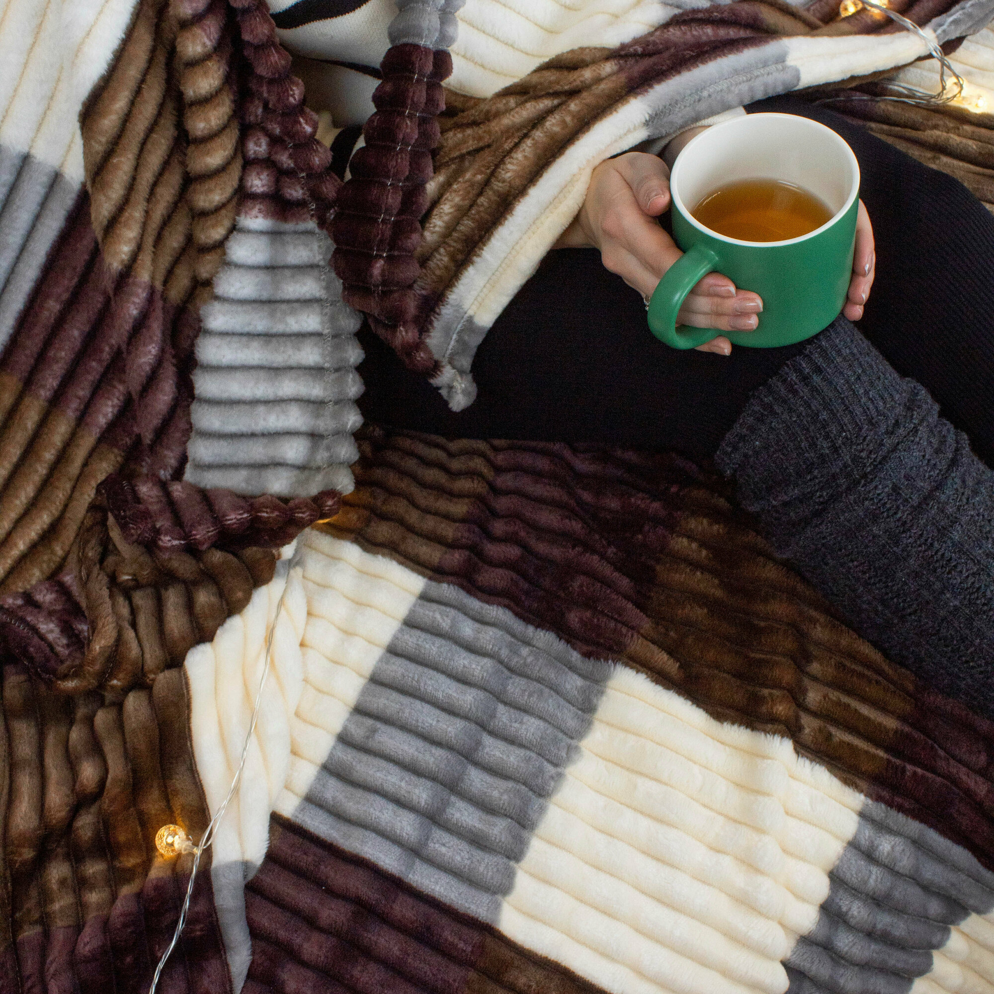 Плед двуспальный 180х200 шоколадный в клетку, покрывало на кровать и диван Cleo Orrizonte Print, пушистый велсофт