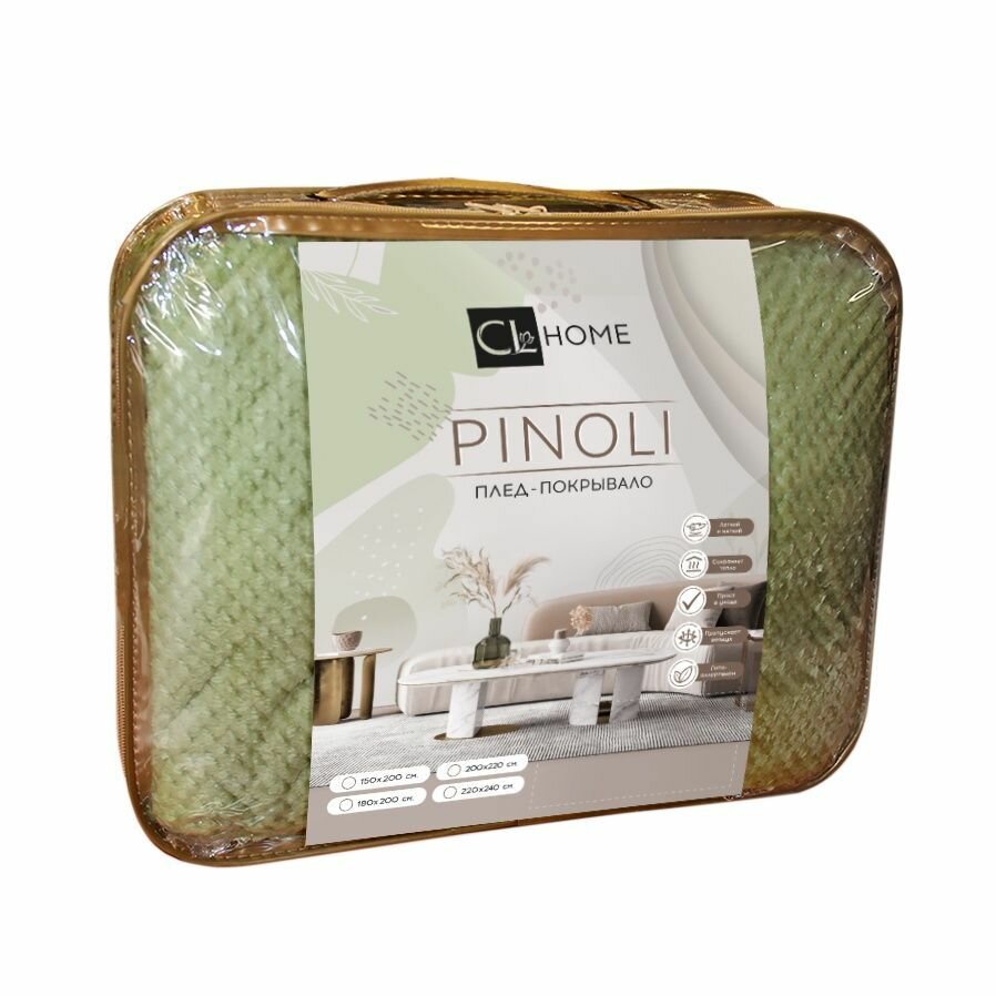 Плед 200х220 однотонный зеленый Cleo PINOLI покрывало на кровать и диван пушистый велсофт