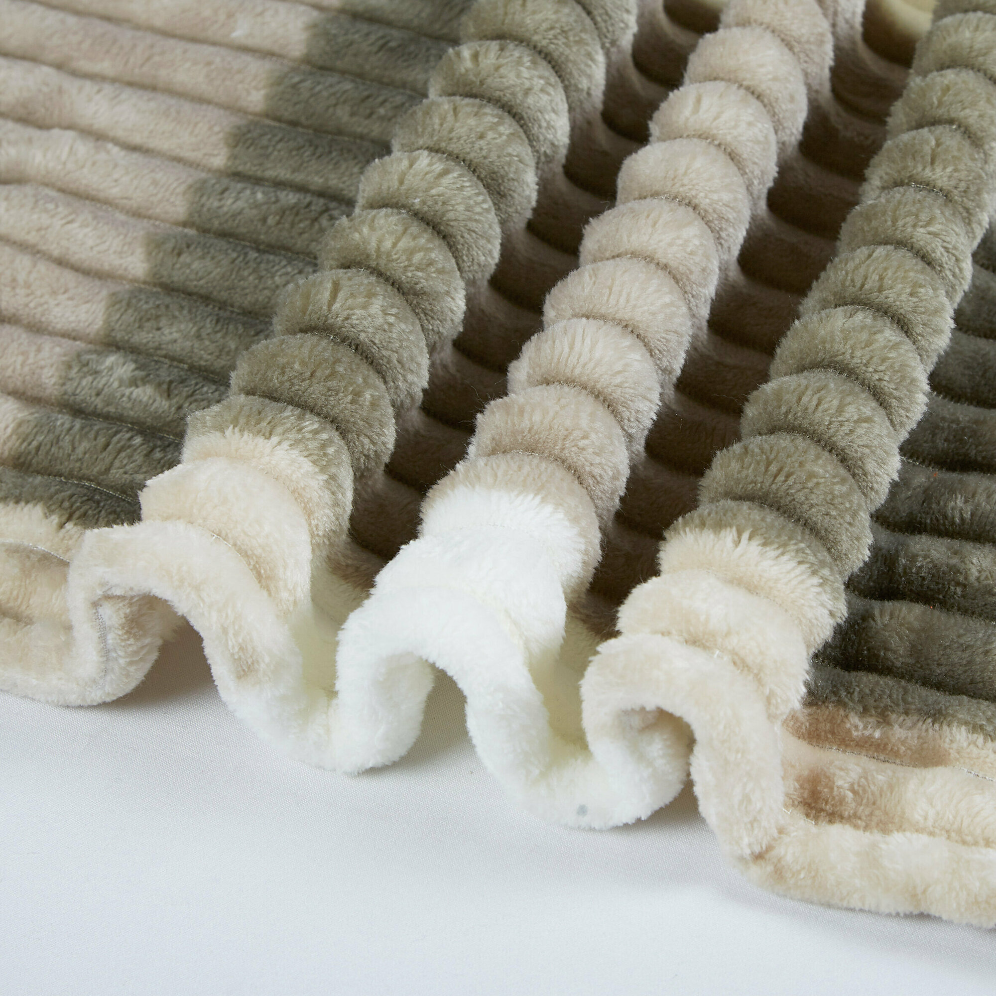 Плед 180х200 однотонный бежевый Cleo Pinoli покрывало на кровать и диван в кольце велсофт