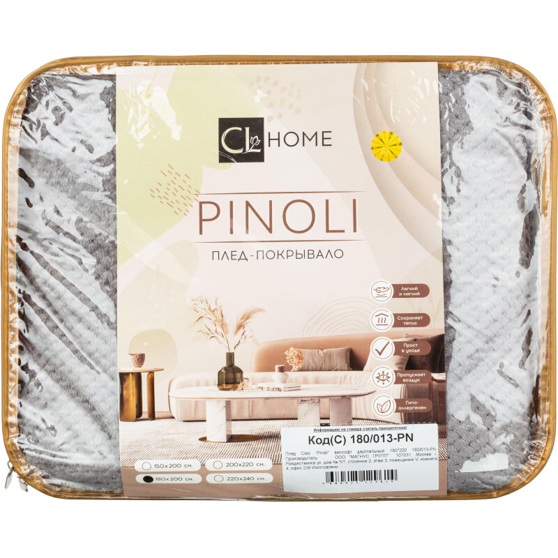 Плед из велсофта Pinoli 015-PN Cleo (бежевый), 180x200