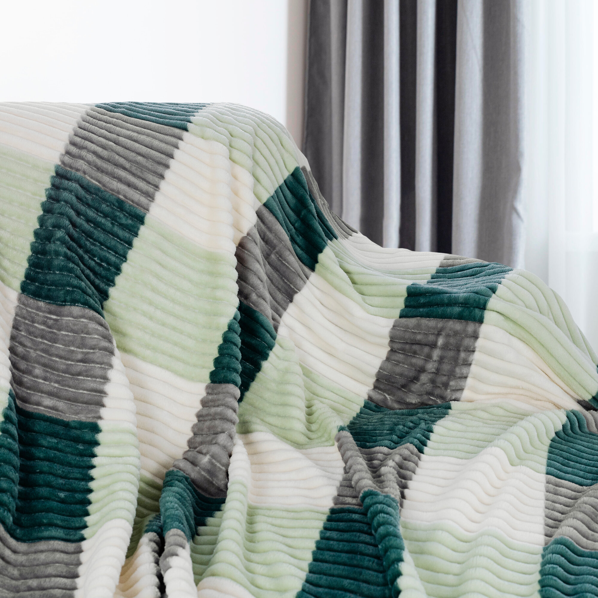 СохранитьПлед двуспальный 180х200 зеленый в клетку, покрывало на кровать и диван Cleo Orrizonte Print, пушистый велсофт интересное: