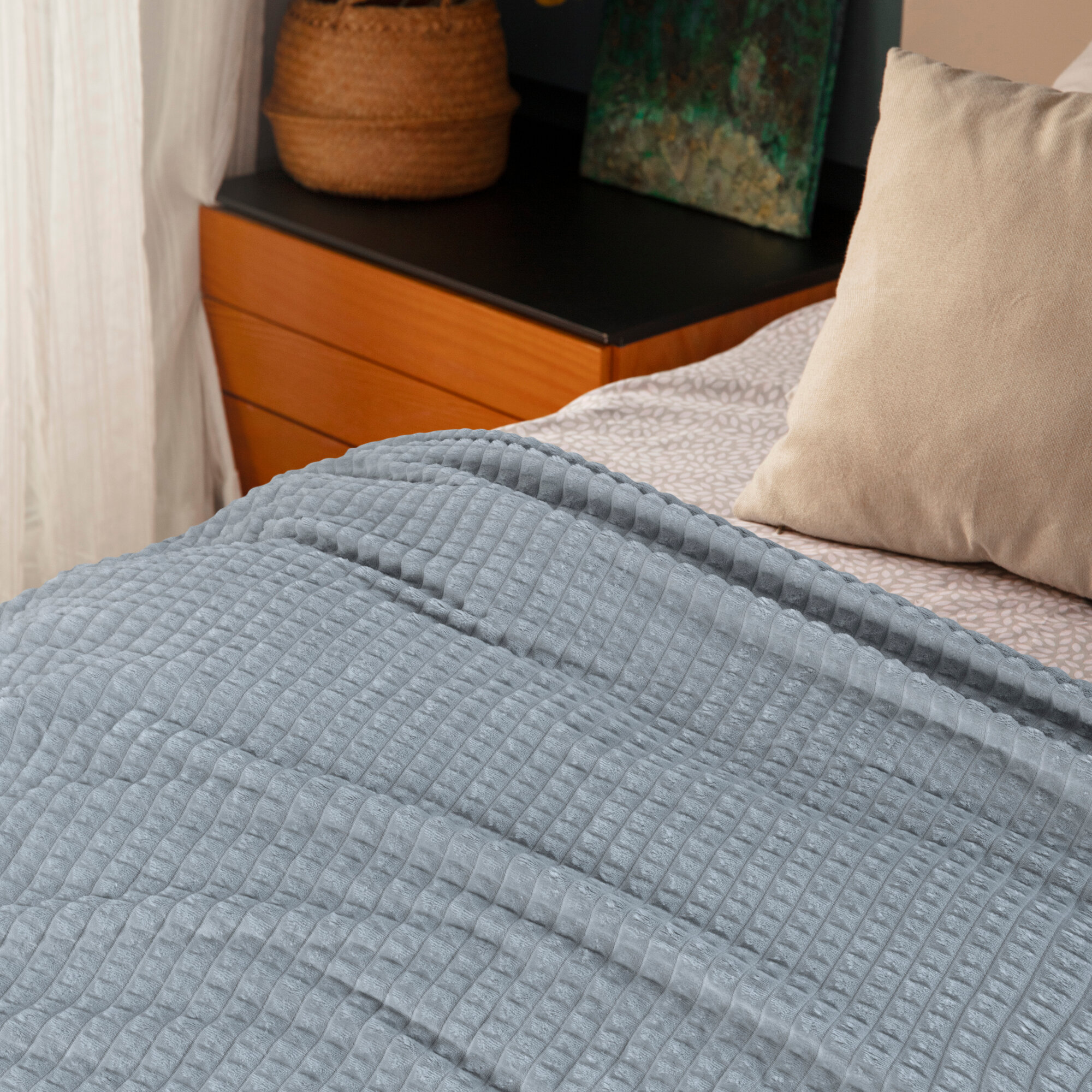Плед 180х200 2-спальный Cleo CARRE велсофт пушистый серо-голубой