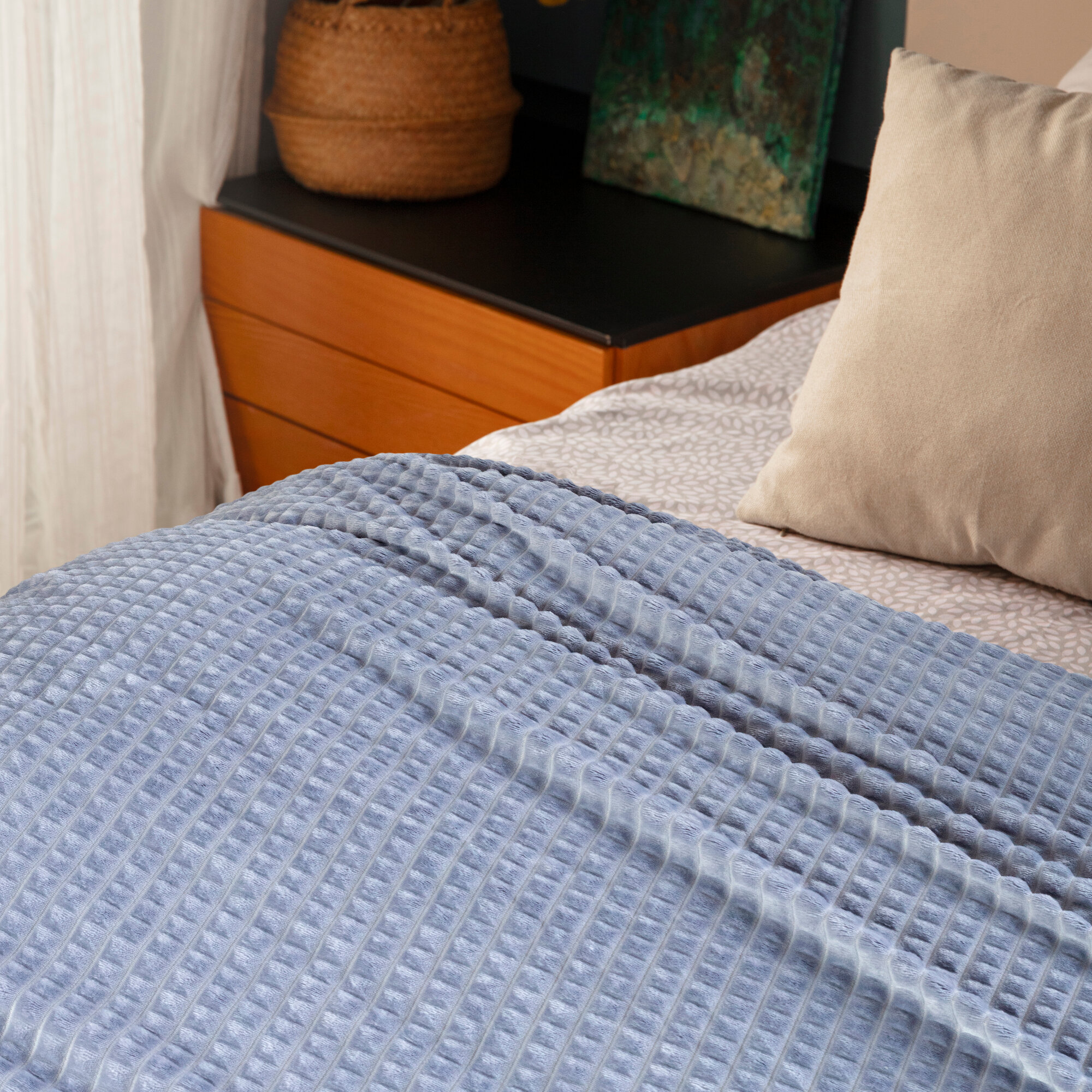 Плед 180х200 2-спальный Cleo CARRE велсофт пушистый серо-голубой