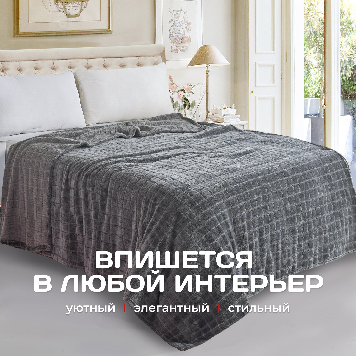 Купить Плед Unifico "Martinique Dark Grey", велсофт, евромакси, 240x260 см