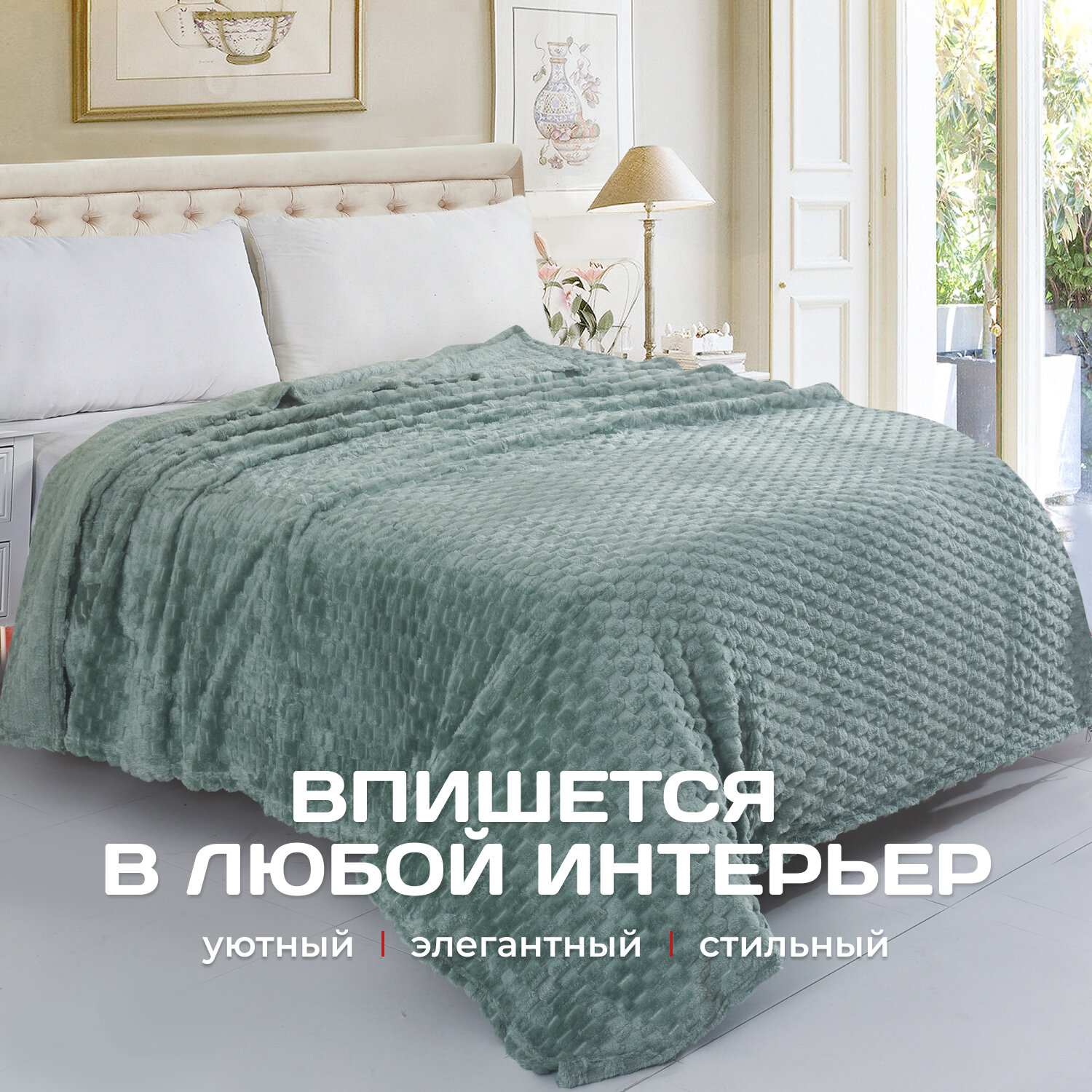 Купить Плед Unifico "Elba", евромакси, велсофт, 240x260 см, плотность 300 г/м², зеленый