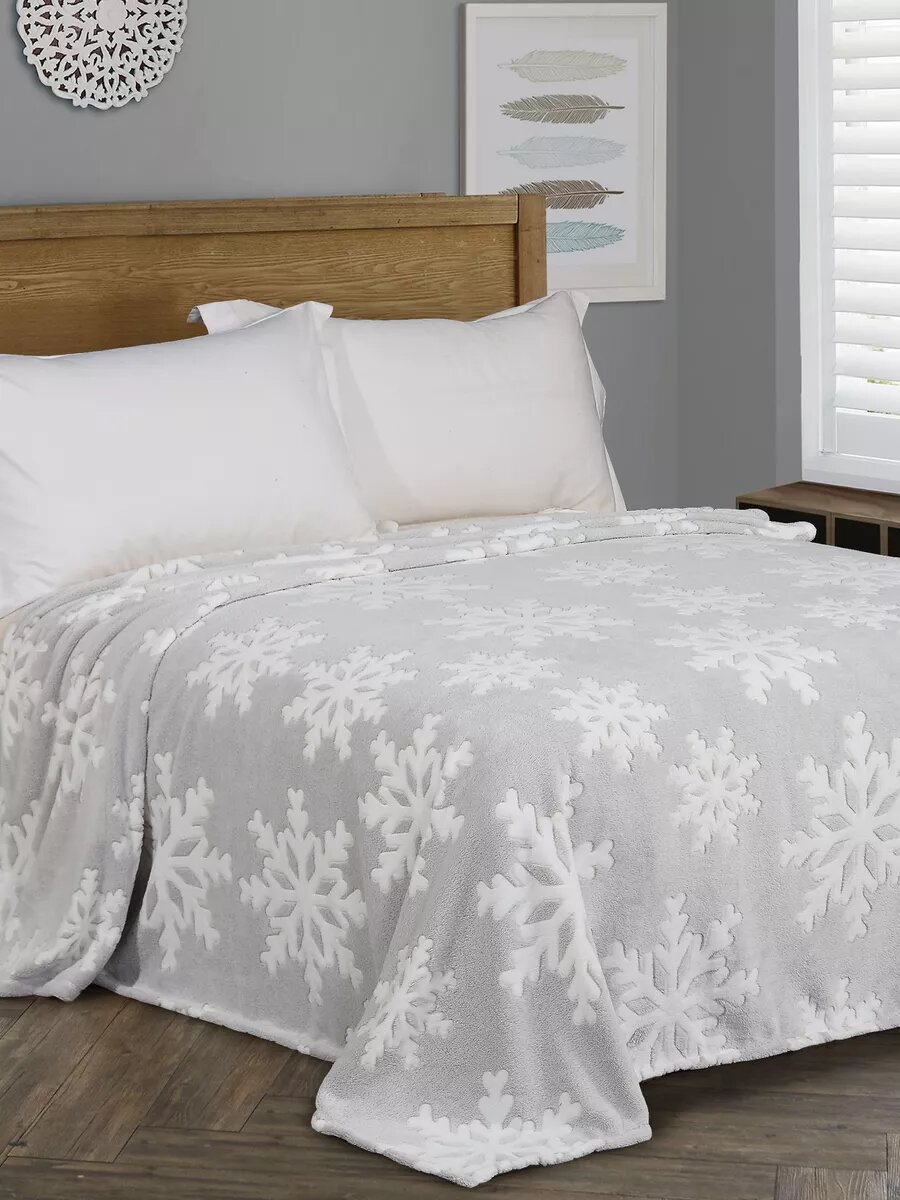Плед 180х200 Покрывало37 новогодний пушистый с 3D снежинками интересное: