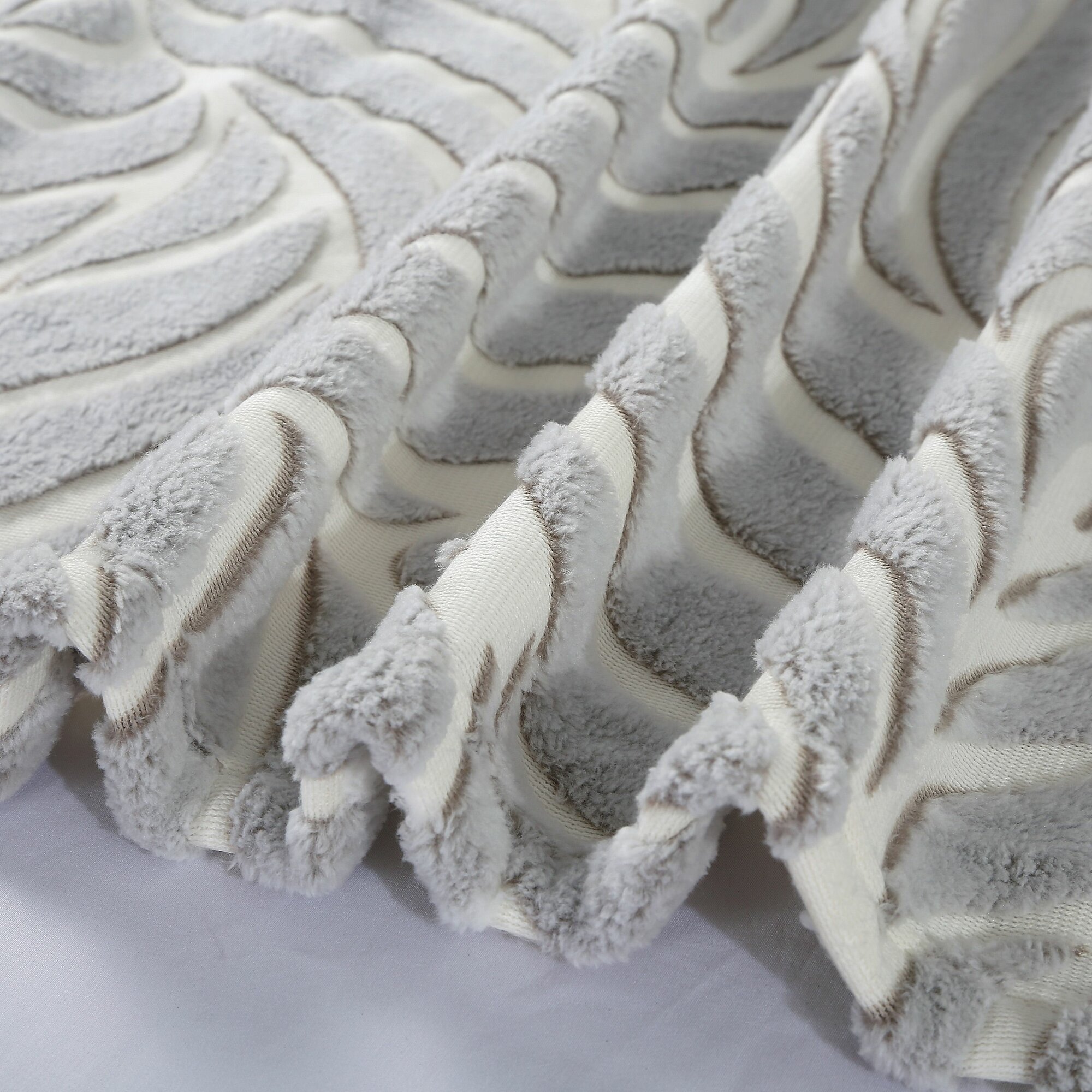 Плед 180х200 2-спальный Cleo Parma светло-серый, покрывало на кровать и диван пушистое с рисунком, велсофт