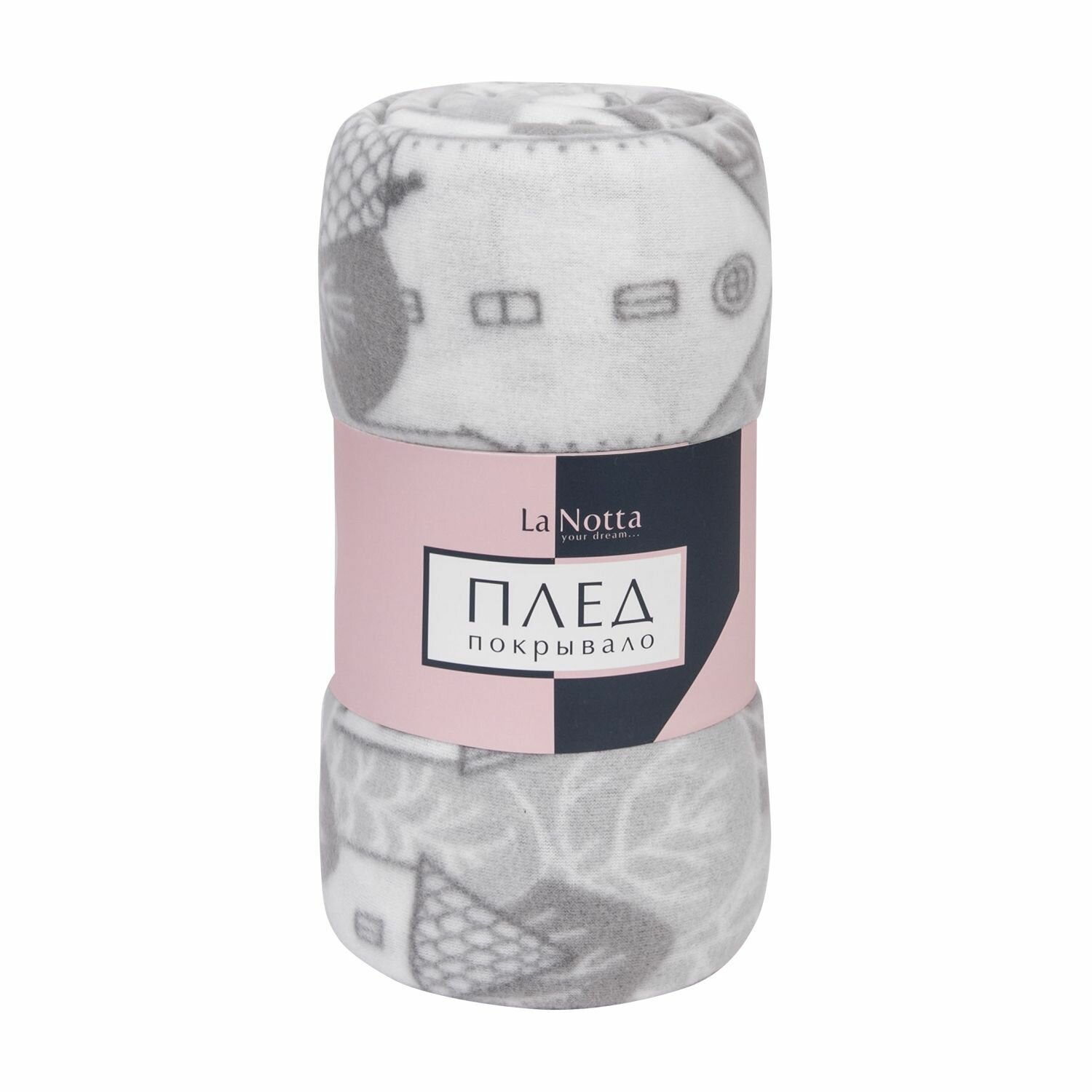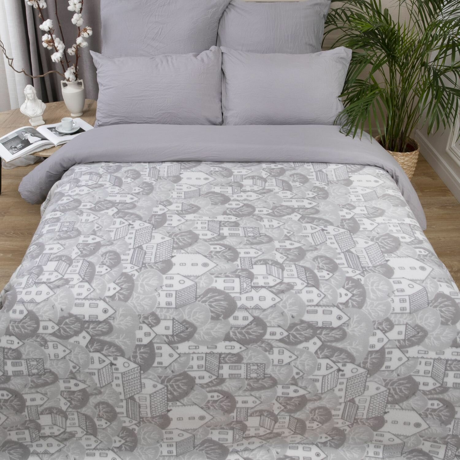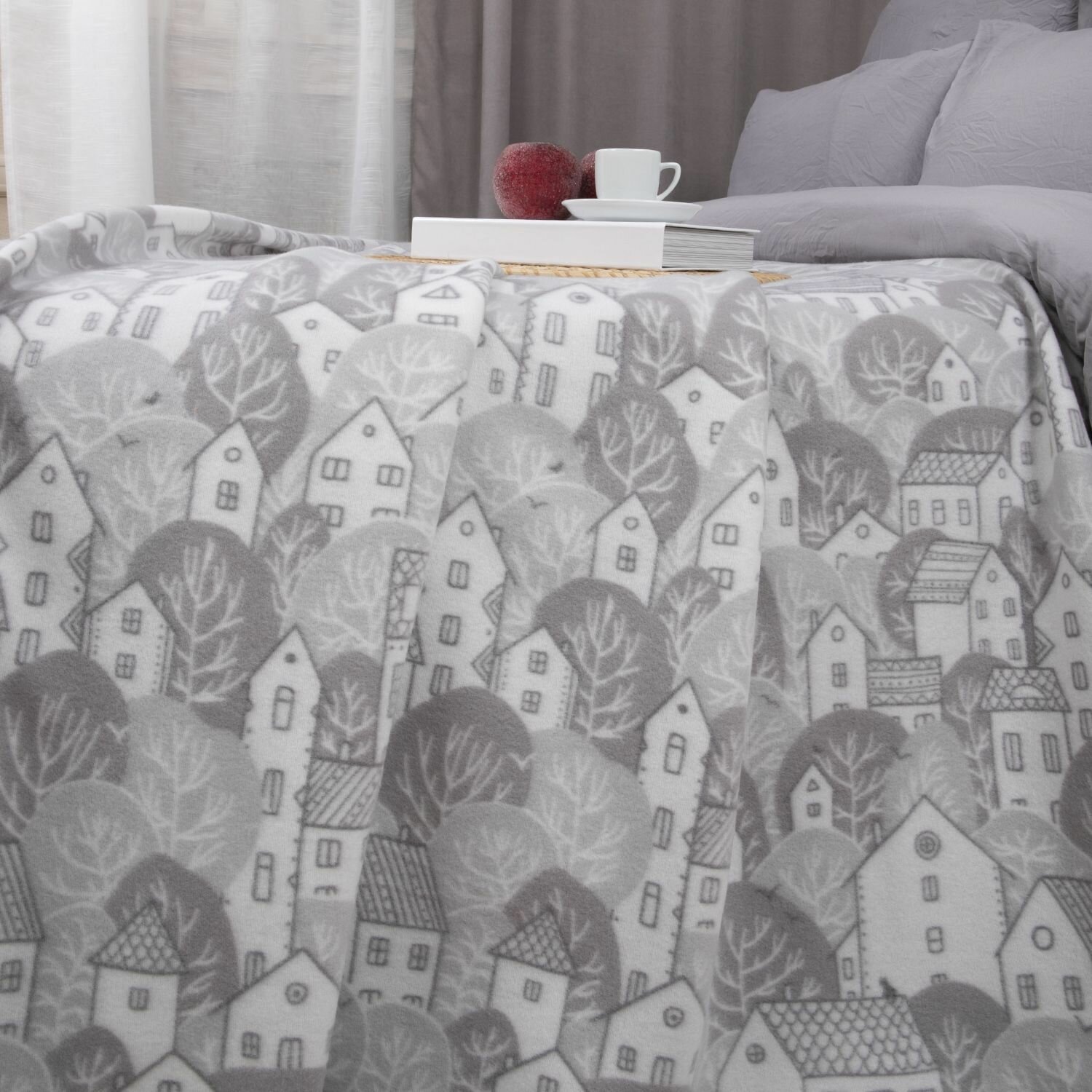 Плед 150х200 флисовый на кровать мягкий, Tessolo Home, Домики серый