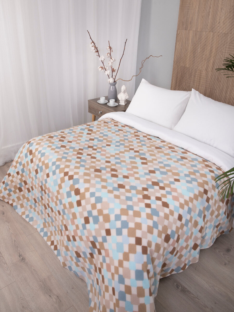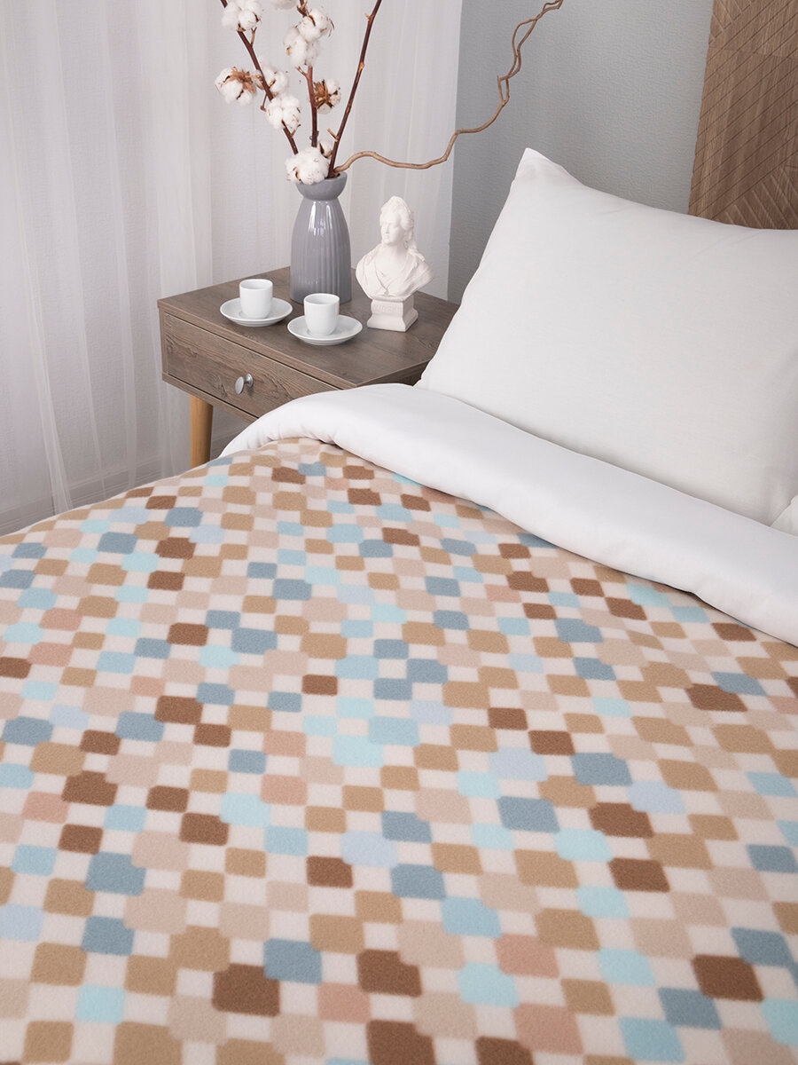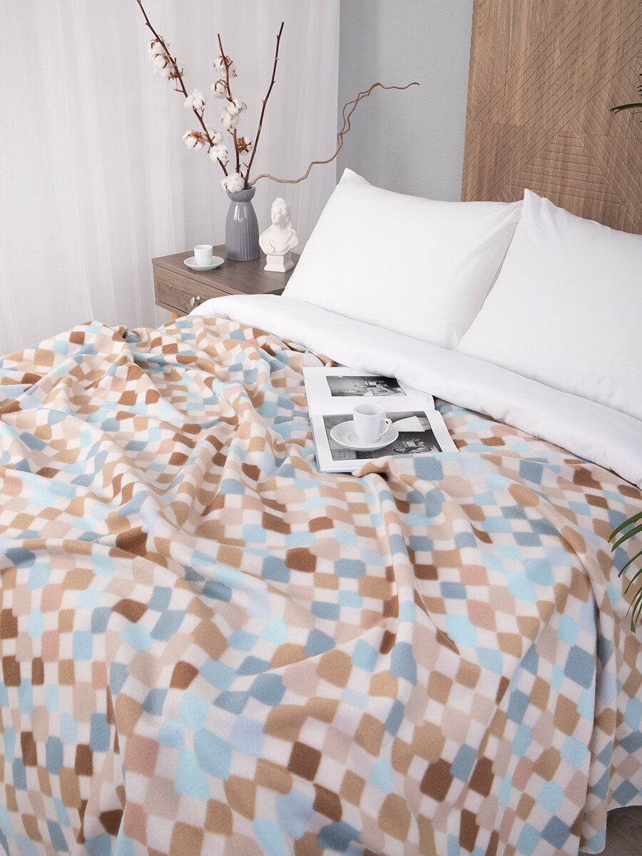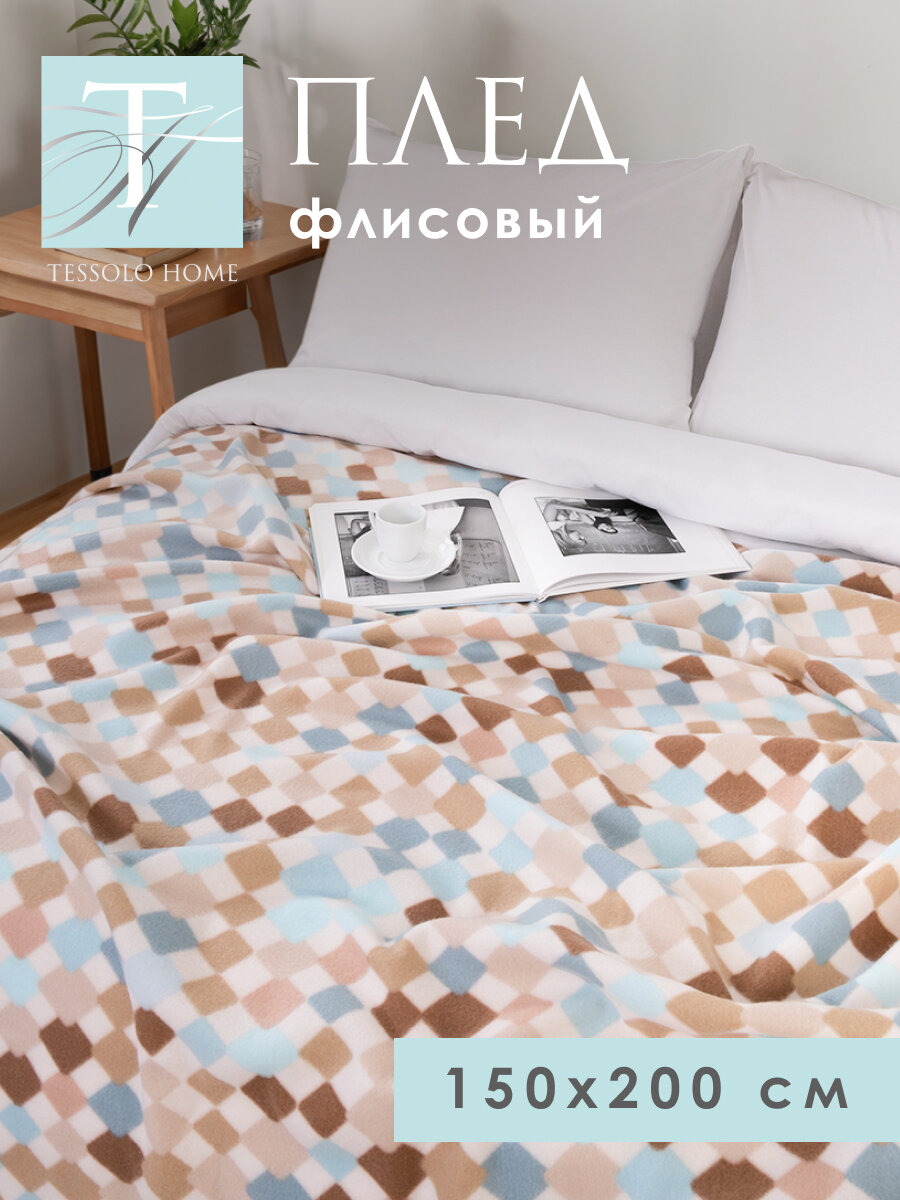 СохранитьПлед 150х200 флисовый на кровать мягкий, Tessolo Home, "Арлекино", бежевый интересное: