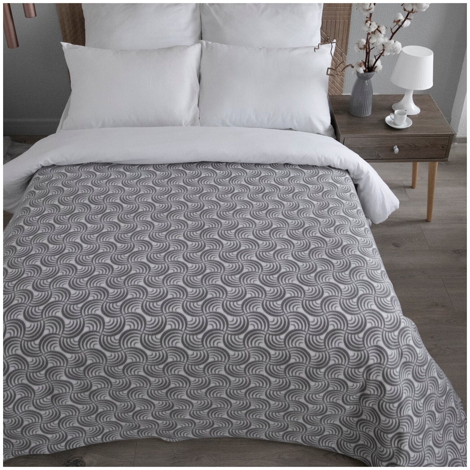 СохранитьПлед 150х200 флисовый на кровать мягкий, "Ракушки" серый интересное: