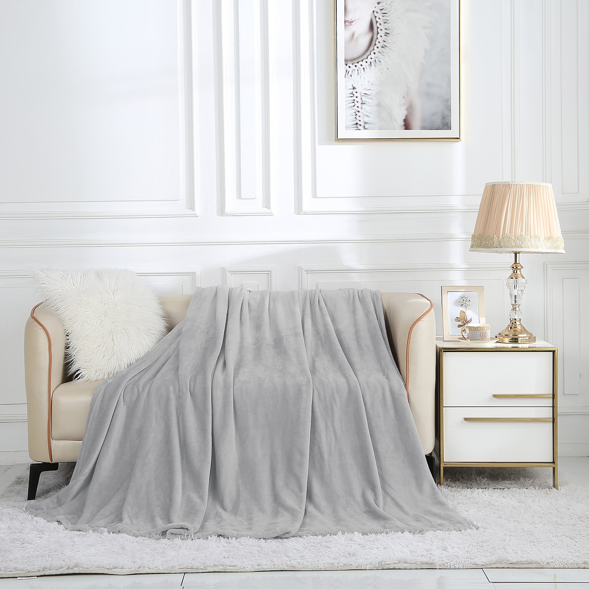 Плед 180х200 2-спальный Cleo AURA велсофт пушистый серый 100% акриловая микрофибра