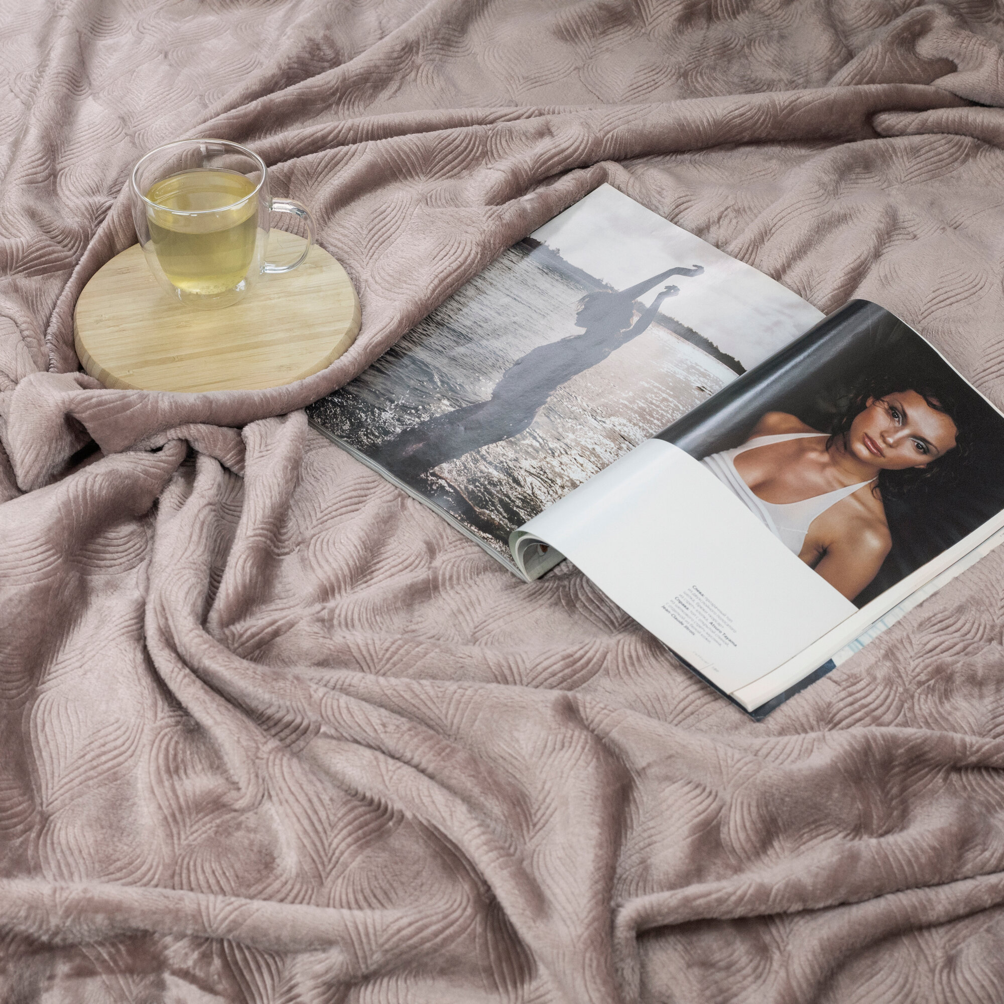 Плед евро 200х220 Cleo Volna мягкий пушистый с рисунком розовый коричневый, 100% акриловая микрофибра