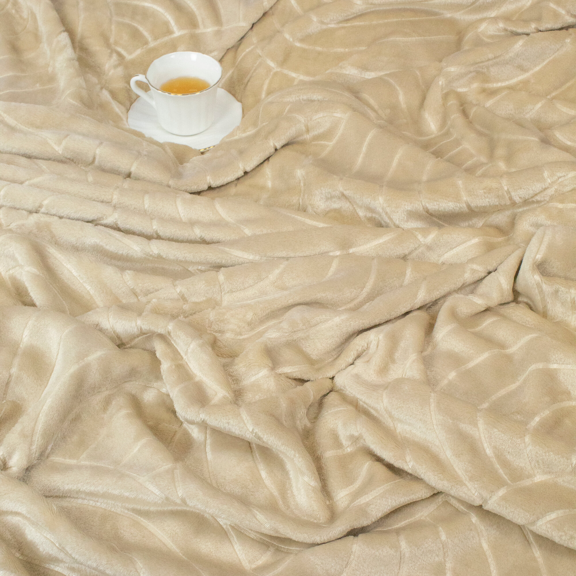Плед 180х200 2 спальный на диван Cleo Volna мягкий пушистый с рисунком бежевый, 100% акриловая микрофибра