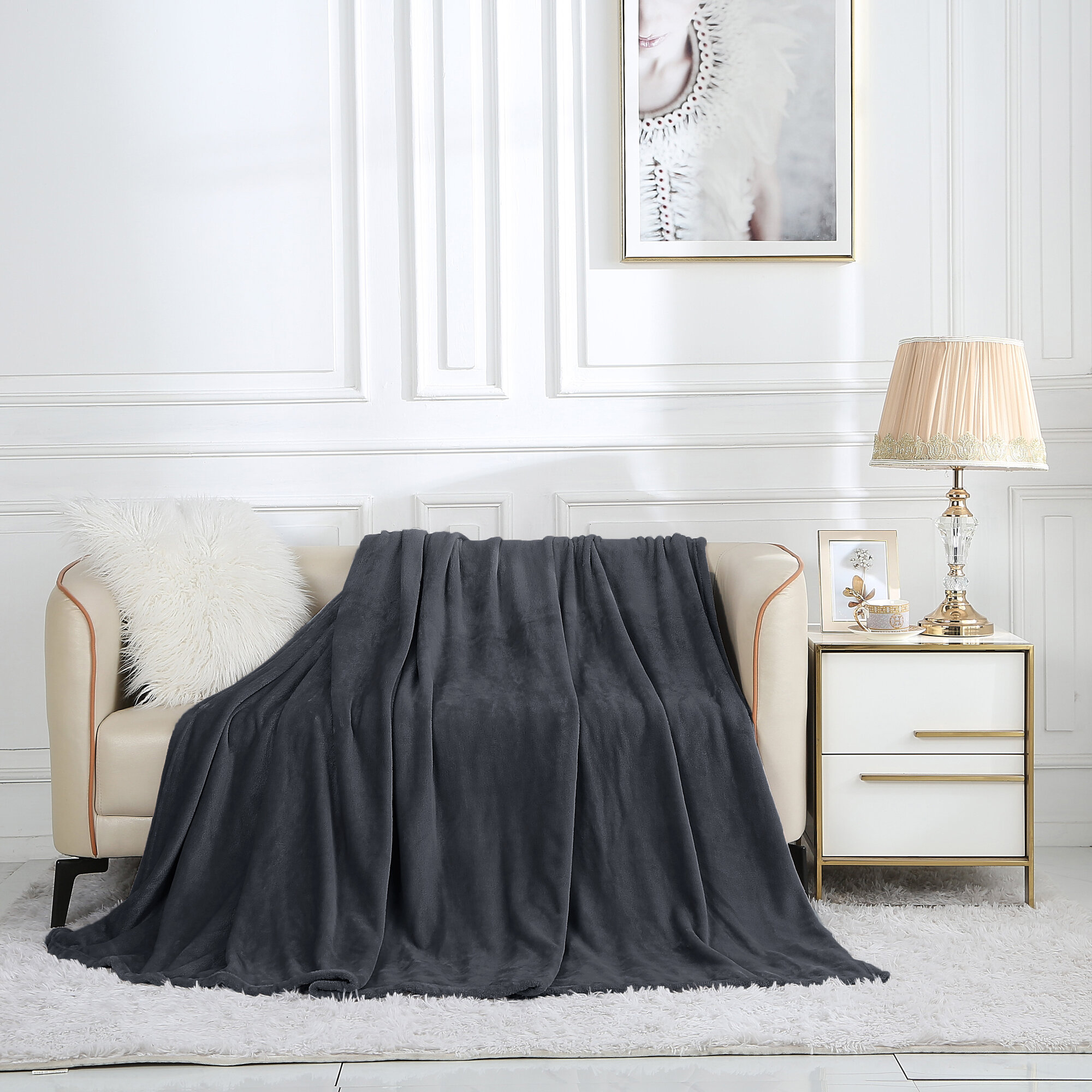 Плед 150х200 1.5-спальный Cleo AURA велсофт пушистый графитовый