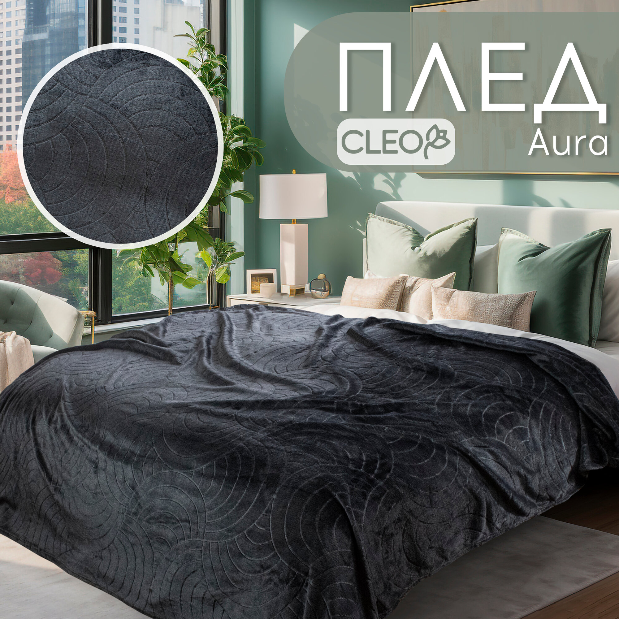 Купить Плед 200х220 евро Cleo AURA велсофт пушистый графитовый
