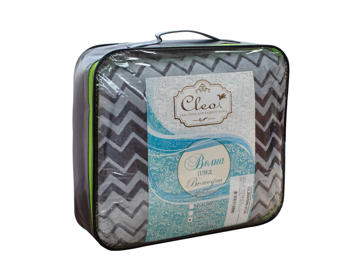 Плед евро 200х220 Cleo Volna мягкий пушистый с рисунком серый, 100% акриловая микрофибра