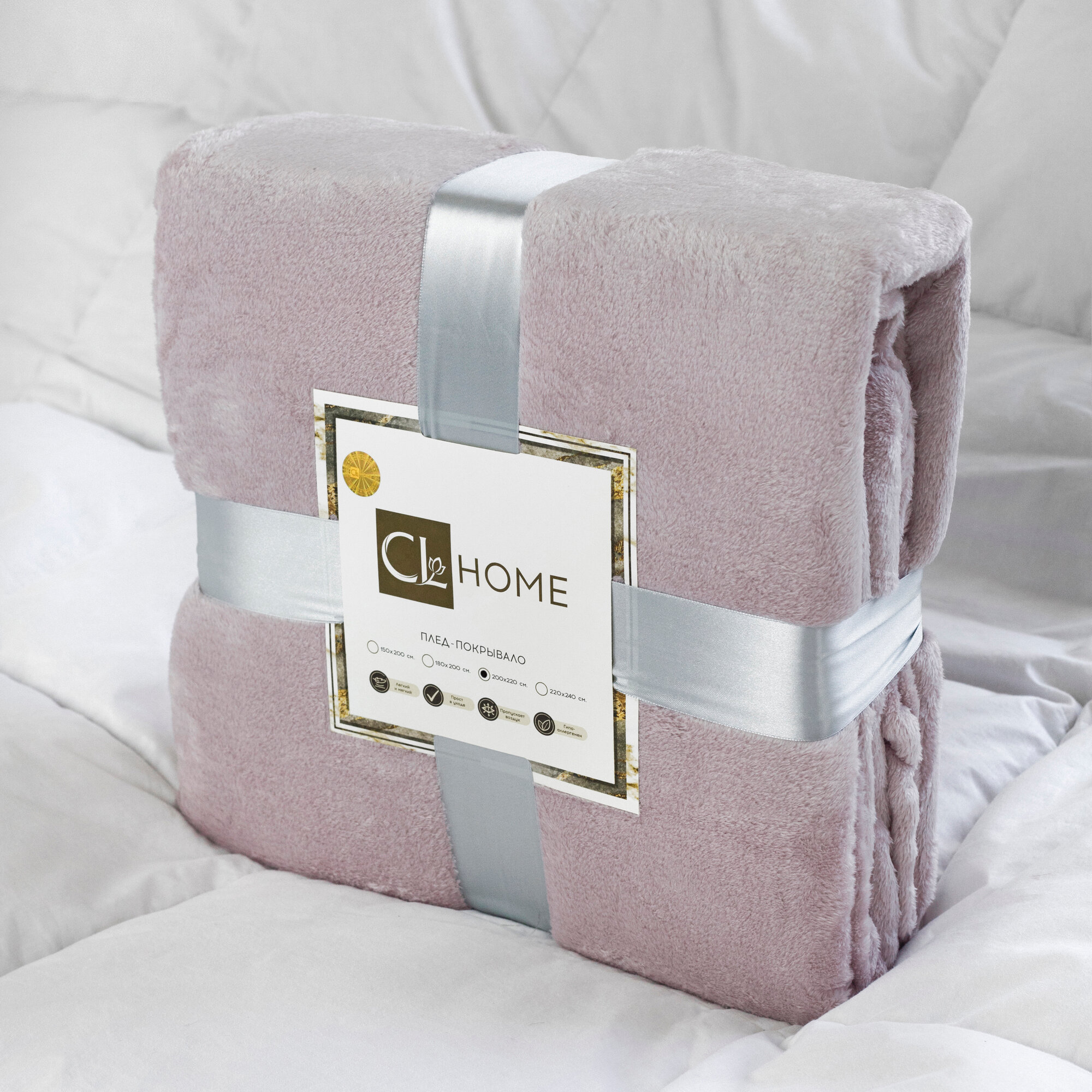 Плед 150х200 однотонный Cleo Virginia покрывало на кровать и диван в атласной ленте велсофт