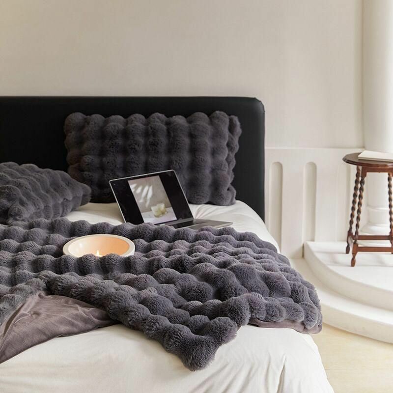 Покрывало Mency, искусственный мех, 220×240 см, евро, 3D-эффект, серое