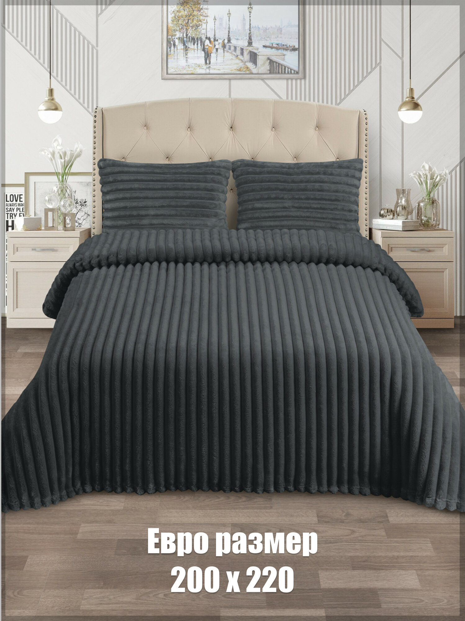 Пушистый плед-покрывало 200x220 для дивана, серый, велсофт интересное: